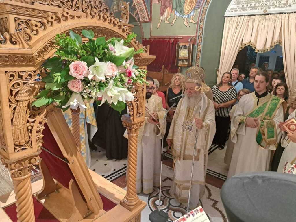 Μετά το πέρας της Θείας Λειτουργίας, εψάλησαν από τον Σεβασμιώτατο και τους Ιερείς τα εγκώμια ενώπιον του ιερού κουβουκλίου της εικόνος της Αγίας Παρασκευής, σκορπίζοντας ρίγη συγκινήσεως στα πλήθη των προσελθόντων φιλαγίων πιστών.