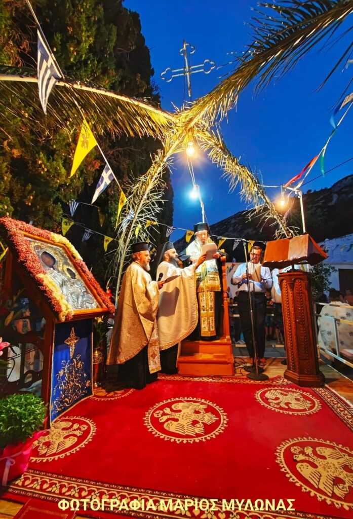 Την κυριώνυμο ημέρα της θεομητορικής εορτής στον προαναφερθέντα ιερό ναό τελέσθηκε η Αρχιερατική Θεία Λειτουργία προεξάρχοντος του Σεβασμιωτάτου Μητροπολίτου Καρυστίας και Σκύρου κ. Σεραφείμ με συλλειτουργούς τον Γενικό Αρχιερατικό Επίτροπο Πρωτοπρ Ελευθέριο Σταμπέλο και τον Διάκονο Στυλιανό Πεταχτή.