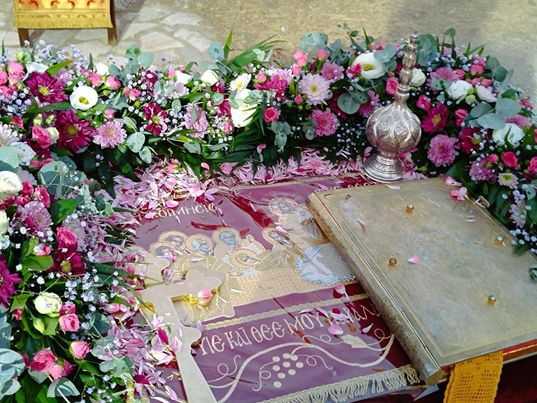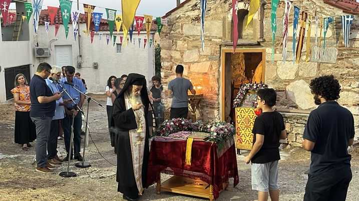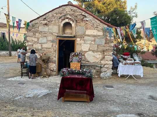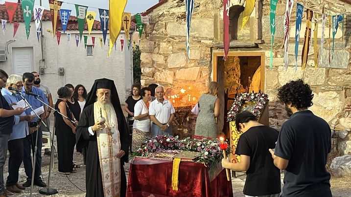 Με ιδιαίτερη λαμπρότητα και κατάνυξη εορτάστηκε η Απόδοσης της ΚΟΙΜΗΣΕΩΣ ΤΗΣ ΘΕΟΤΟΚΟΥ στον βυζαντινό παλαιό και πρώτο Ιερό Ναό της Ενορίας του Αλιβερίου, κτισμένος το 1394, στο ύψωμα επάνω από το πρώην κτήριο του Ο.Τ.Ε..
