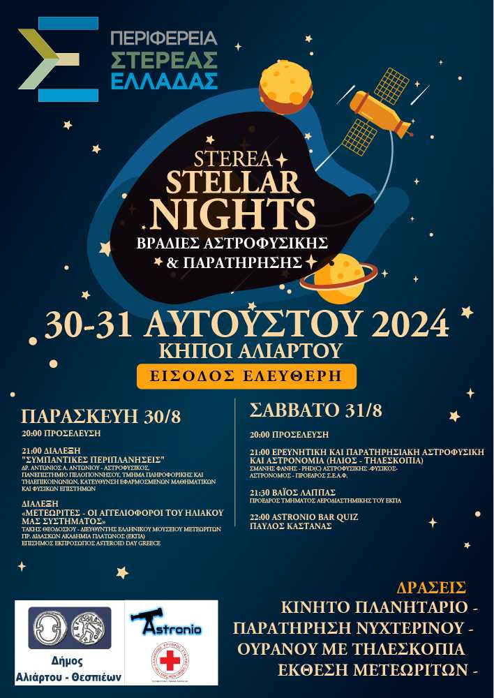 Η Περιφέρεια Στερεάς Ελλάδας και ο Αντιπεριφερειάρχης Ψηφιακής Διακυβέρνησης & Καινοτομίας Βαρδακώστας Κωνσταντίνος στις 30 και 31 Αυγούστου παρουσιάζουν τις STELLAR NIGHTS- ΒΡΑΔΙΕΣ ΑΣΤΡΟΦΥΣΙΚΗΣ ΚΑΙ ΠΑΡΑΤΗΡΗΣΗΣ.