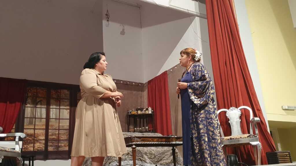 Την σκηνοθεσία της θεατρικής παράστασης και την αφήγηση έκανε η Μαρία Παπακωσταντίνου η οποία υποδύθηκε και το ρόλο της αδερφής της πρωταγωνίστριας ηρωίδας Λέλας Καραγιάννη που ερμήνευσε η ταλαντούχα Λέλα Βάγια.