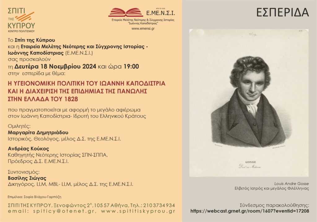“Η υγειονομική πολιτική του Ιωάννη Καποδίστρια και η διαχείριση της επιδημίας της πανώλης στην Ελλάδα του 1828“