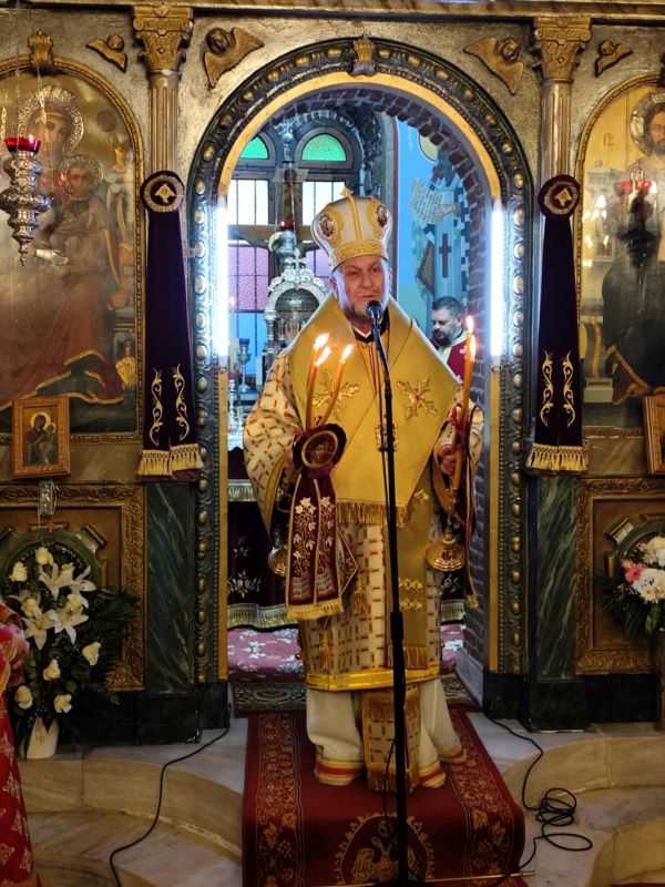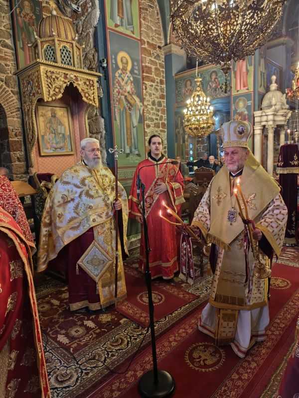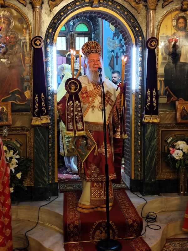 Ο Σεβασμιώτατος κ. Χρυσόστομος κήρυξε τον θείο λόγο αναφερθείς στα ιερά γεγονότα της εναθρωπήσεως του Υιού και Λόγου του Θεού και πως η Υπεραγία Θεοτόκος έγινε η υπουργός του Μυστηρίου αυτού, αναδεικνύοντας την ιερότητα και τη σπουδαιότητα της μητρότητας. Κατόπιν ευχήθηκε αδελφικά και εγκαρδιότατα προς τον εορτάζοντα Σεβασμιώτατο Μητροπολίτη Διοσπόλεως κ. Εμμανουήλ.