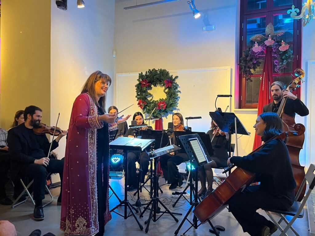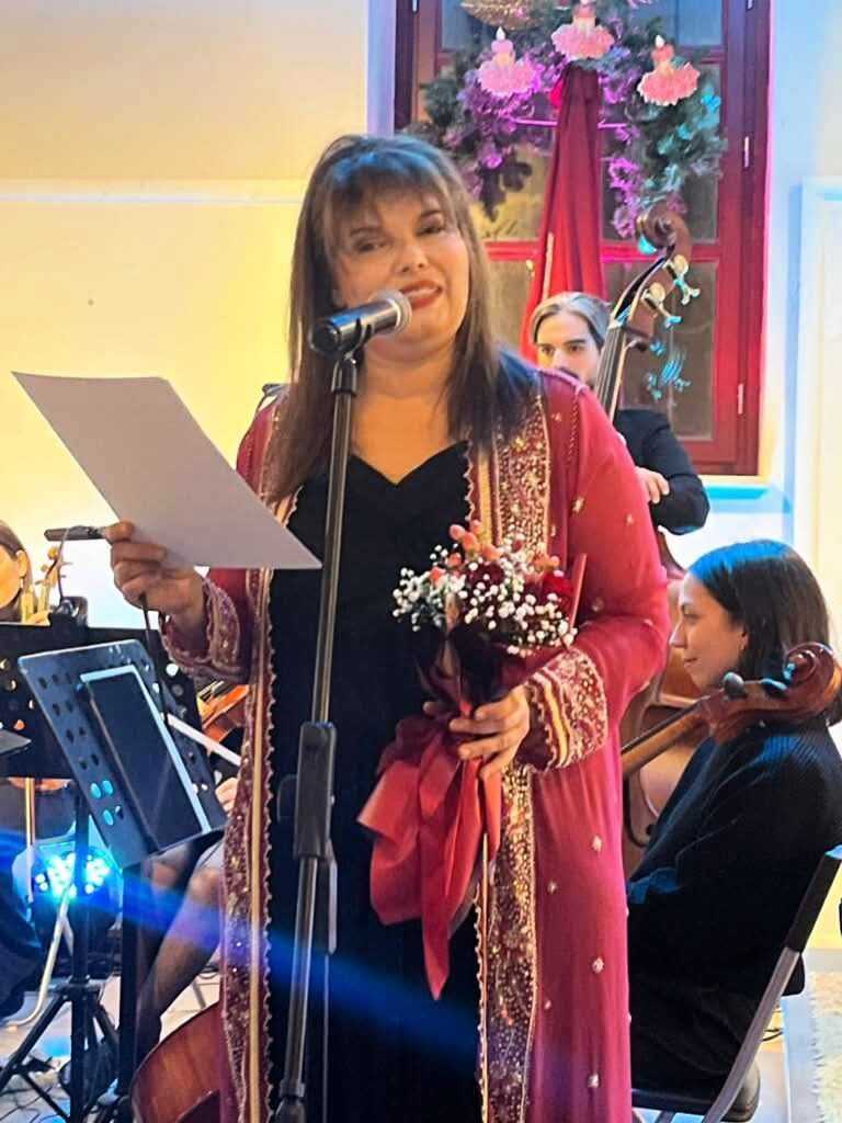 Στη Βιόλα, η πολυτάλαντη και μαίστορ του ήχου, κα. Ελένη Φουρλάνου.