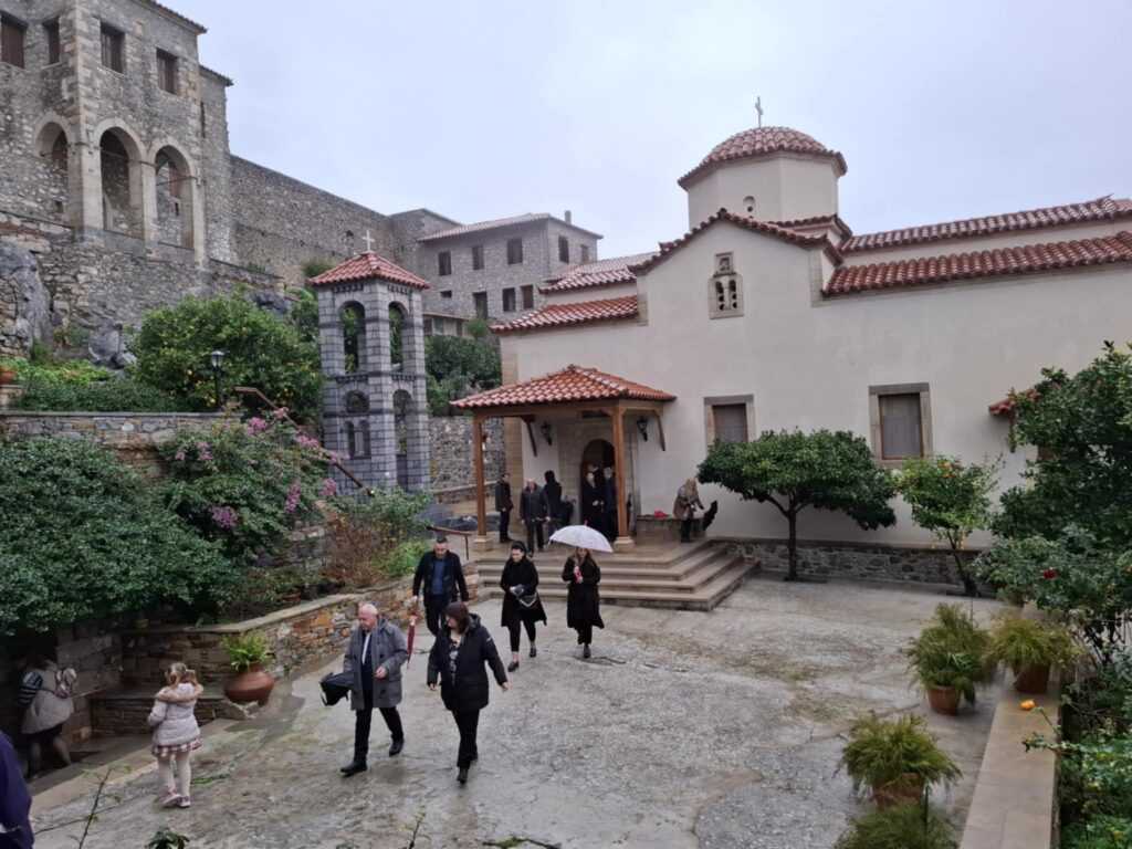 Με λαμπρότητα και κατάνυξη παρά τις δυσμενείς καιρικές συνθήκες τιμήθηκε η Δεσποτική Εορτή των Χριστουγέννων και μητρόπολη πασών των εορτών στο καθολικό της Ιεράς Μονής Μεταμορφώσεως του Σωτήρος Κύμης όπου τελέσθηκε η Αρχιερατική Θεία Λειτουργία προεξάρχοντος του Σεβασμιωτάτου Μητροπολίτου Καρυστίας και Σκύρου κ. Σεραφείμ συμπαραστατούμενος απο τους Πανοσ Αρχιμ π. Νικόδημο Γιαννακόπουλο Γέροντα της Ιεράς Μονής και Ηγούμενο Ιεράς Μονής Τιμίου Προδρόμου Καρυών – Αχλαδερής και τον π. Αντώνιο Αγγελόπουλο με την συμμετοχή της Ηγουμένης Συγκλητικής Μοναχής μετα της μοναστικής αδελφότητος της ιεράς μονής όπου απέδωσαν κατανυκτικά τους θαυμάσιους ύμνους της εορτής.