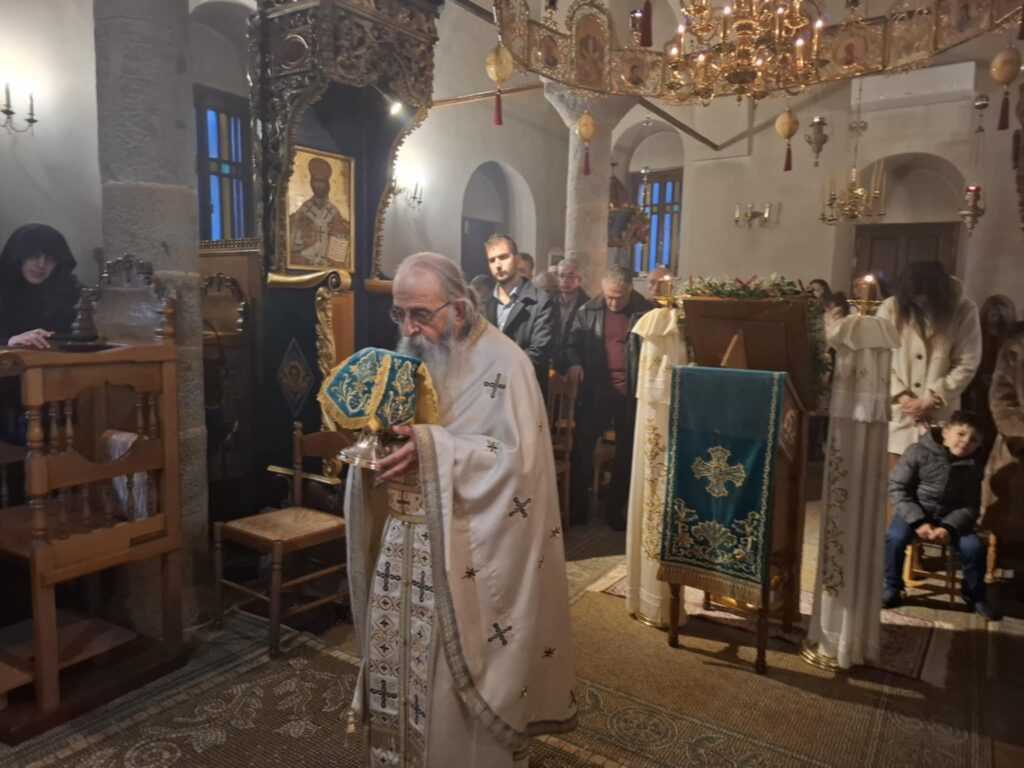 Τέλος πριν την απόλυση ο Σεβασμιώτατος κ. Σεραφείμ απευθύνοντας τις πατρικές και εόρτιες ευχές του προέτρεψε τους πιστούς που συμμετείχαν στην θεία ευχαριστία με την ευκαιρία της εορτής «να ξαναγίνουμε όλοι παιδιά» όπως ορίζει η παράδοση μας με τα χριστουγενιάτικα κάλαντα.