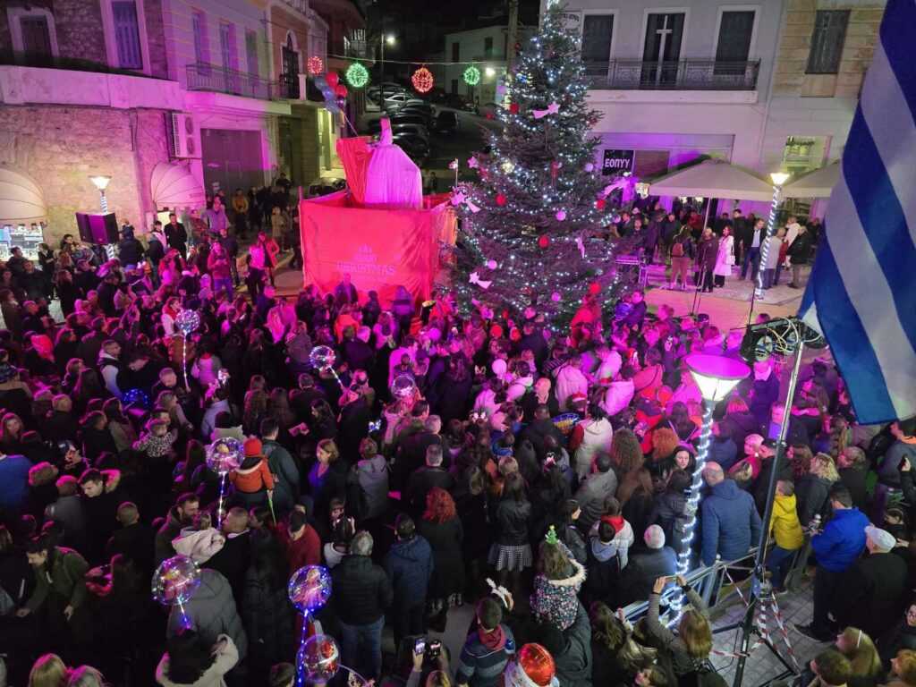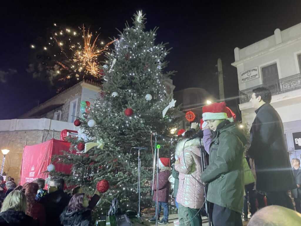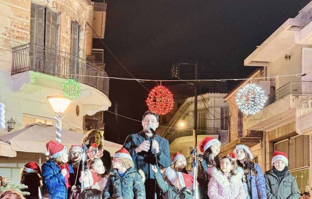 Ο Δήμαρχος, κ. Νίκος Μπαράκος, πάτησε το κουμπί που άναψε τα λαμπιόνια στο Χριστουγεννιάτικο Δέντρο κηρύσσοντας την έναρξη των χριστουγεννιάτικων εορταστικών εκδηλώσεων, ενώ κατά τον ευχητήριο χαιρετισμό του μετέφερε στο αμέτρητο πλήθος, το ουσιαστικό μήνυμα των Χριστουγέννων, αναφέροντας μεταξύ άλλων «… Εύχομαι το πνεύμα των Χριστουγέννων να μας εμπνεύσει να γίνουμε λίγο καλύτεροι — με τον εαυτό μας, τους αγαπημένους μας, αλλά και με όλους εκείνους τους άγνωστους ανθρώπους που συνυπάρχουν μαζί μας σε αυτόν τον κόσμο. Εμείς, ως δημοτική αρχή, θα συνεχίσουμε τις προσπάθειες για έναν δήμο καλύτερο για όλους μας, για τους ηλικιωμένους μας και τα παιδιά μας».