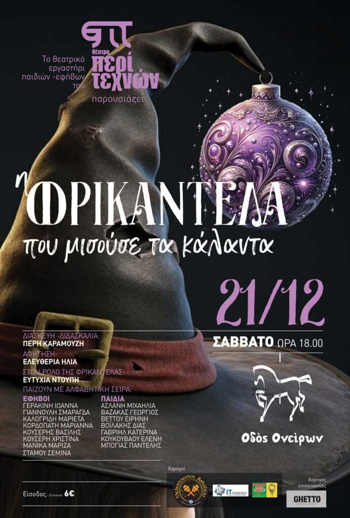 Οι μαθητές των θεατρικών εργαστηρίων 7- 16 ετών του Θέατρο “Περι-Τεχνών” , ανεβαίνουν στην σκηνή της Οδού Ονείρων να μας παρασύρουν σε ένα μαγικό ταξίδι, γεμάτο μαγεία και κάλαντα!