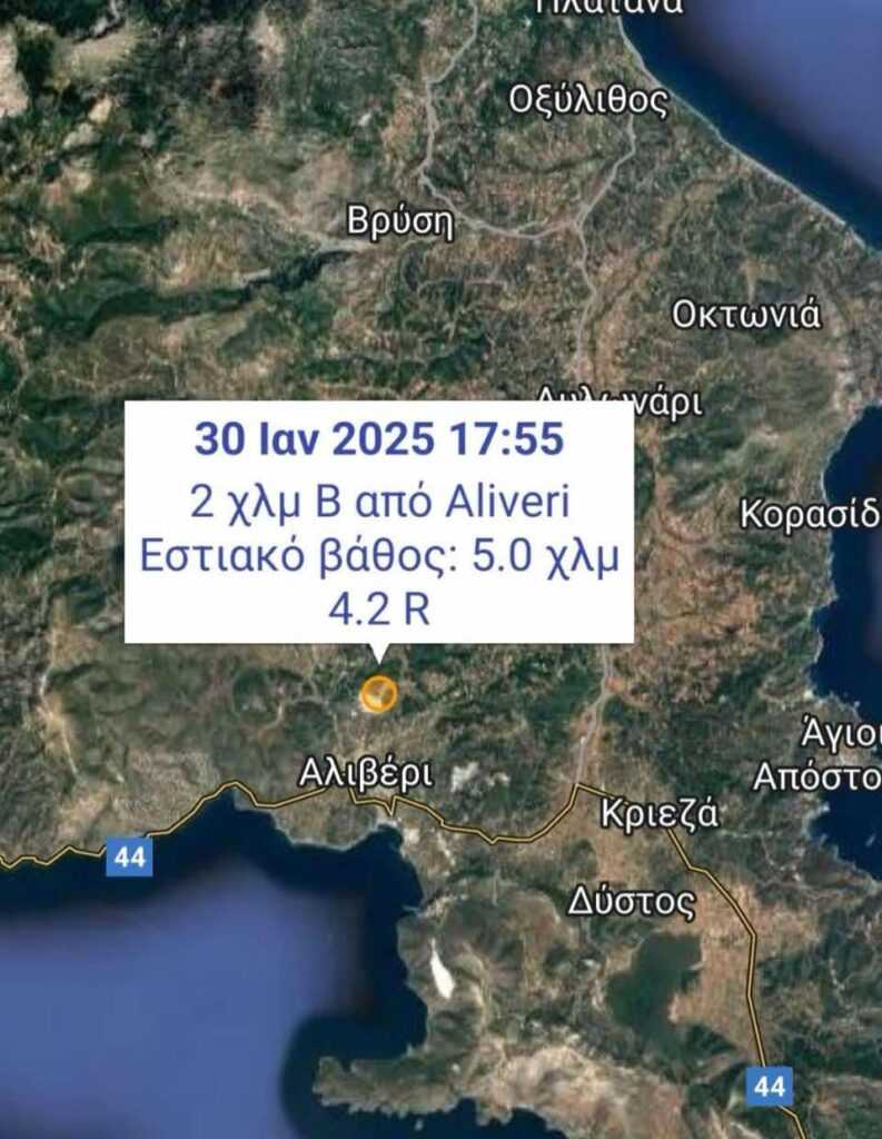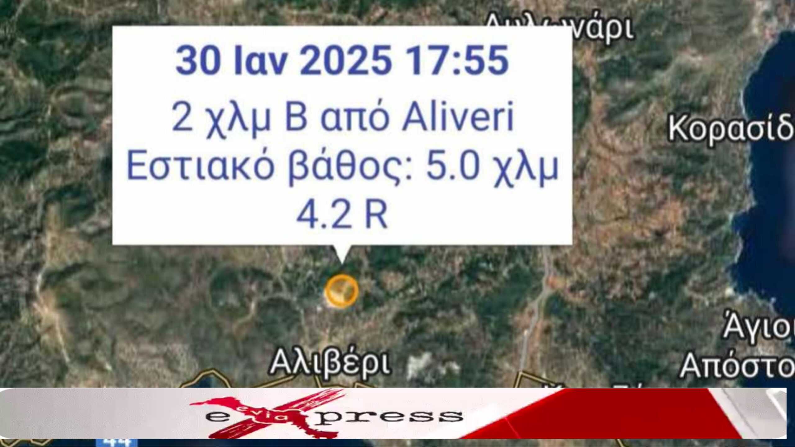 Ισχυρός σεισμός, με επίκεντρο στο Αλιβέρι Ευβοίας μεγέθους 4,5 (ΕΜSC) ή 4,2 Γεωδυναμικό-. Αισθητός και σε όλη την Αττική.