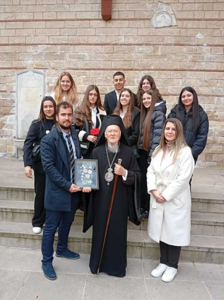 Η συνάντηση ολοκληρώθηκε με μια αναμνηστική φωτογραφία που αποτελεί ένα ιστορικό κομμάτι στο αρχείο του ΓΕΛ Κύμης και με την προτροπή του Οικουμενικού Πατριάρχη για την μελλοντική επαναληπτική τους επίσκεψη στο Φανάρι.