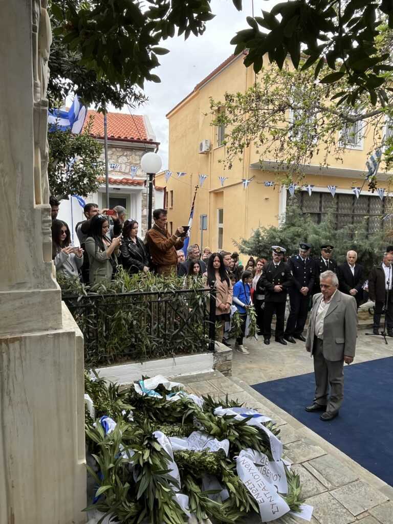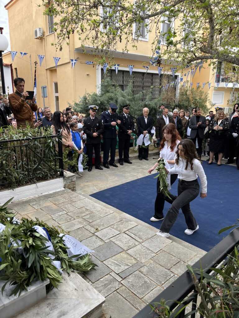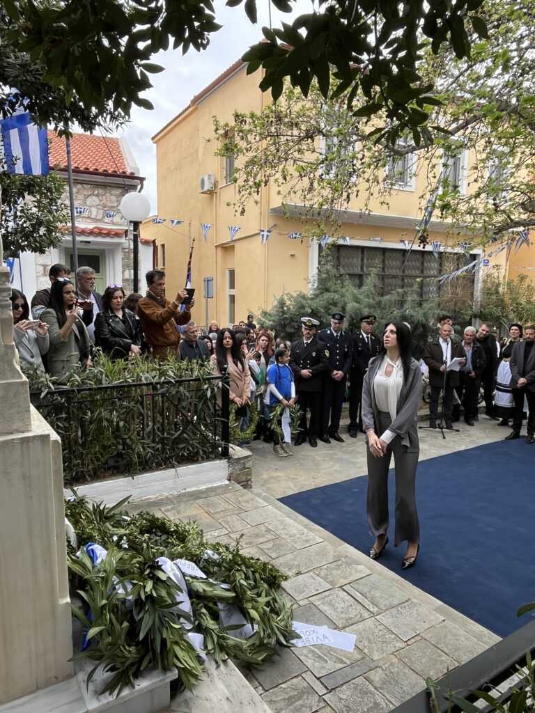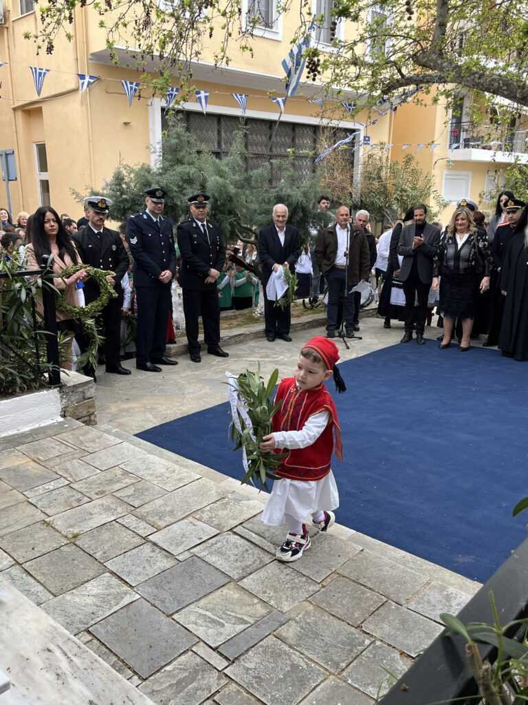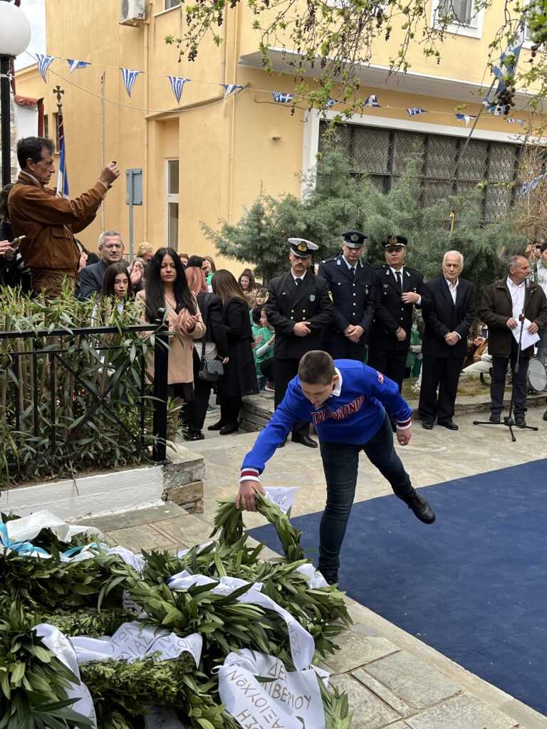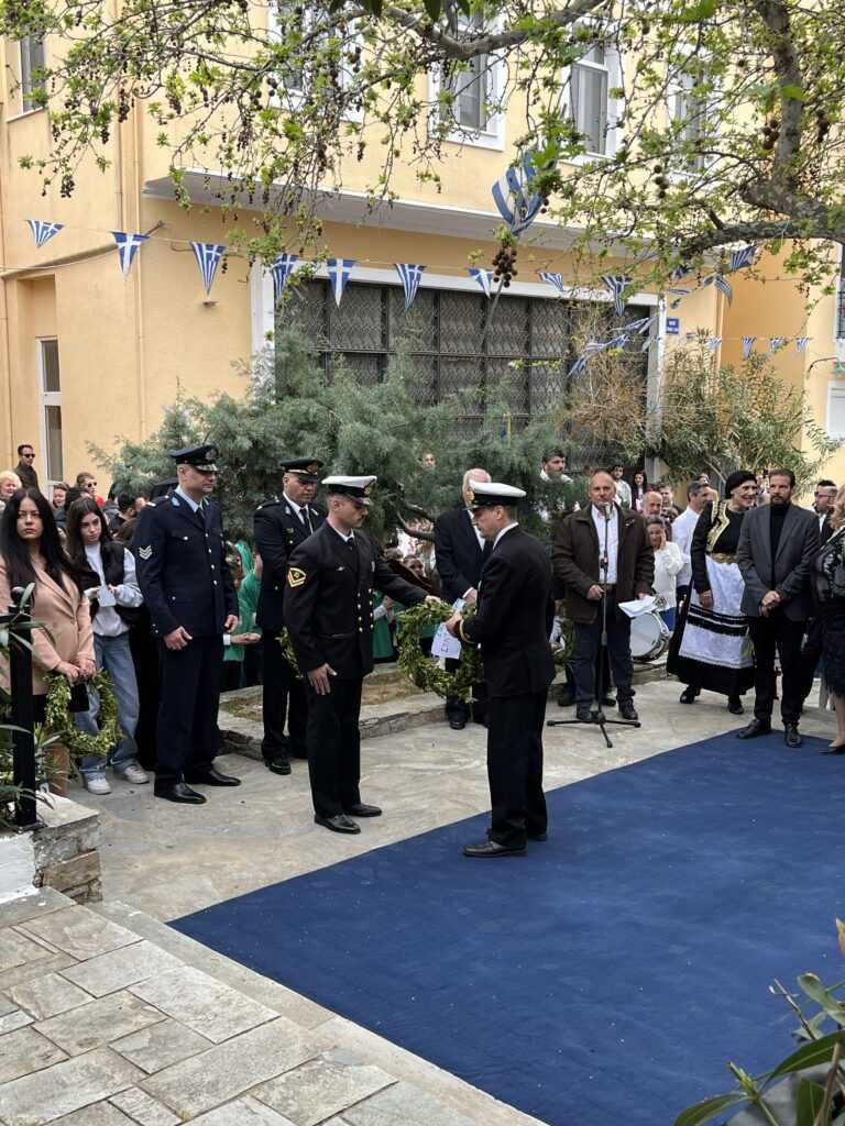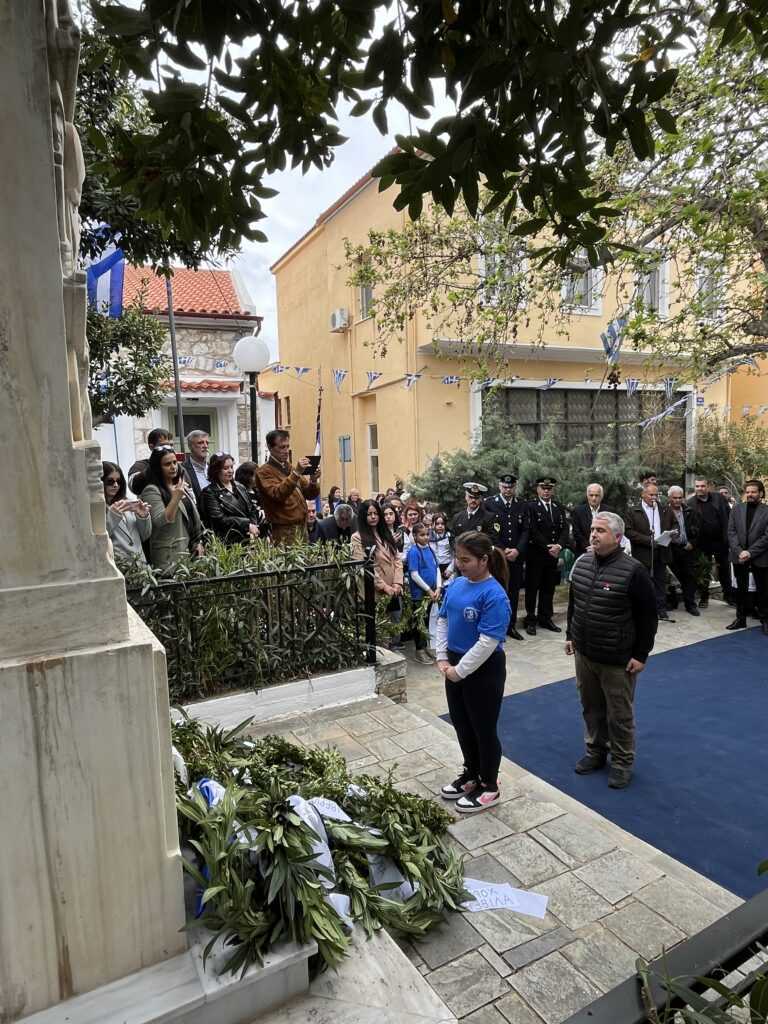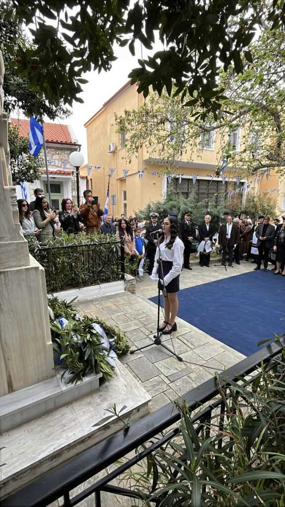 Η Εκφώνηση του Πανηγυρικού της ημέρας έγινε από τoν εκπαιδευτικό του 3ου Δημοτικού Σχολείου Αλιβερίου (Καράβου) κ. Ηλία Ζούνη.