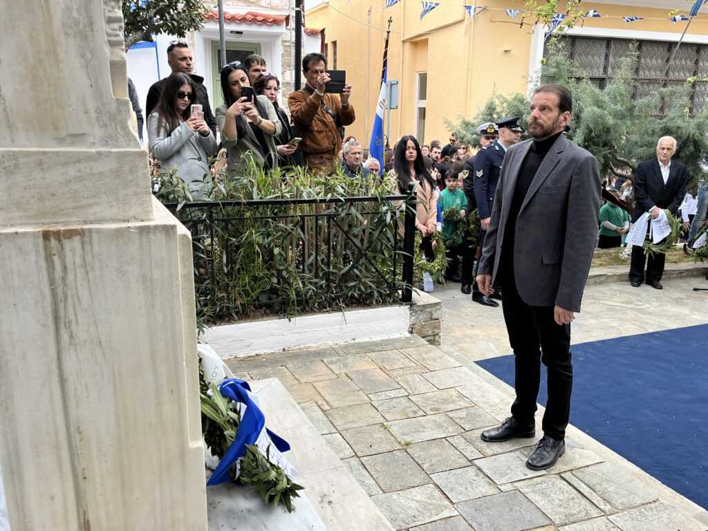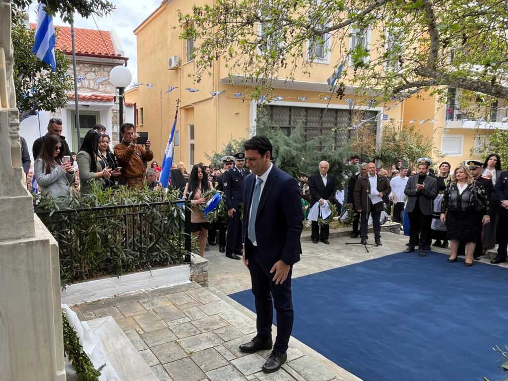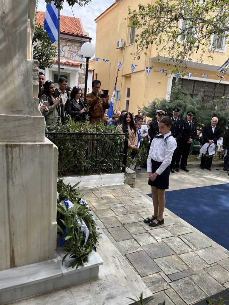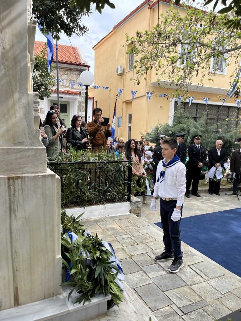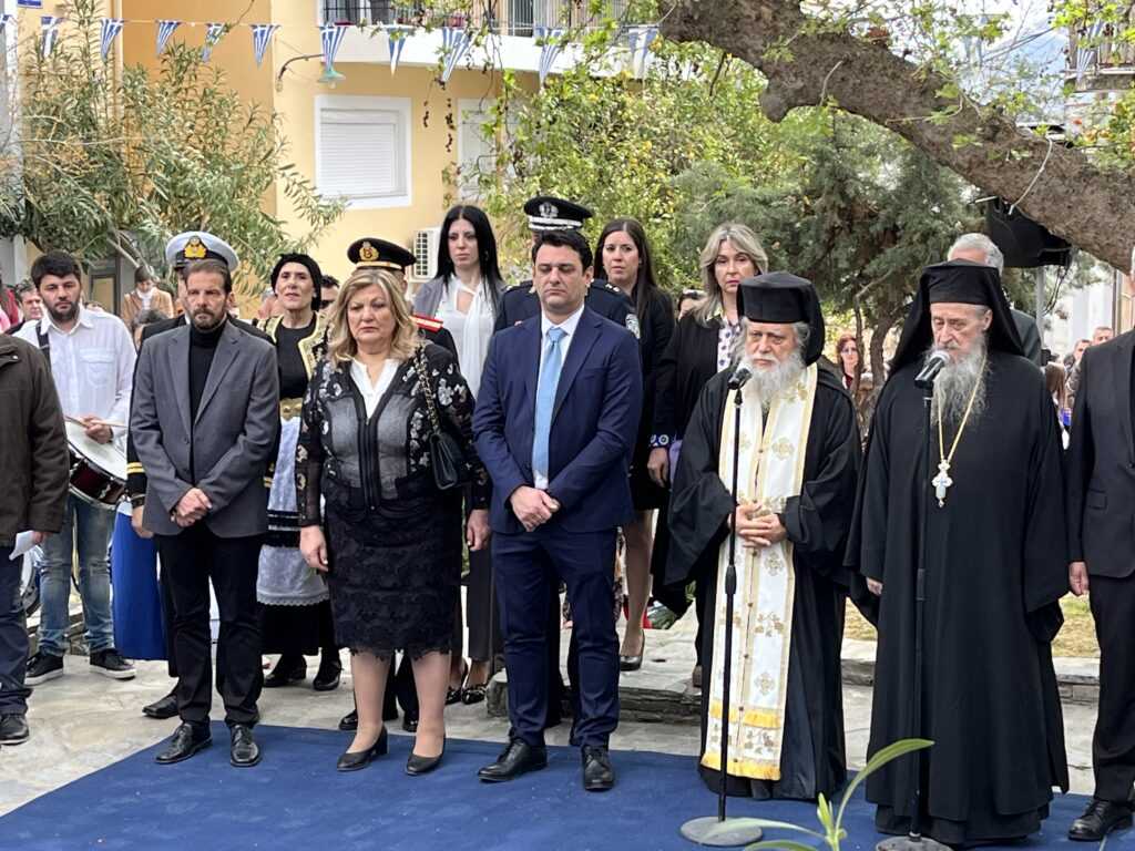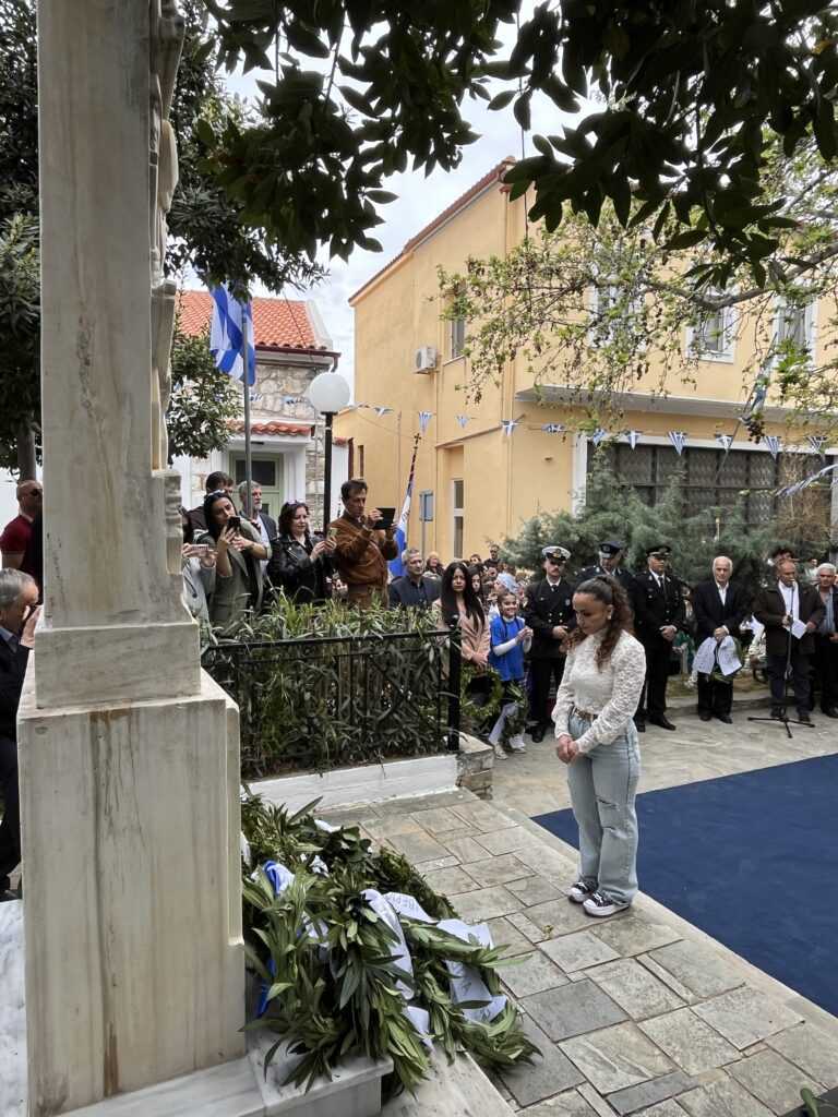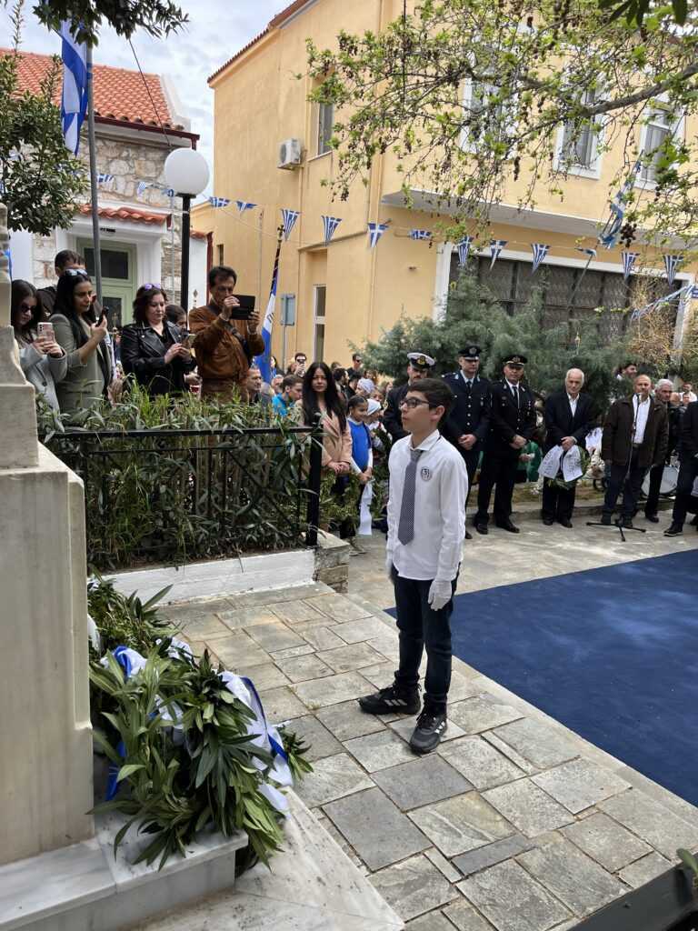 Η Εκφώνηση του Πανηγυρικού της ημέρας έγινε από τoν εκπαιδευτικό του 3ου Δημοτικού Σχολείου Αλιβερίου (Καράβου) κ. Ηλία Ζούνη.