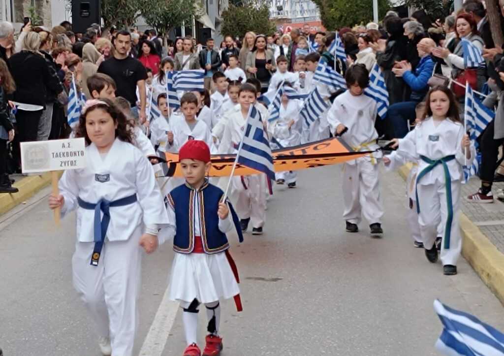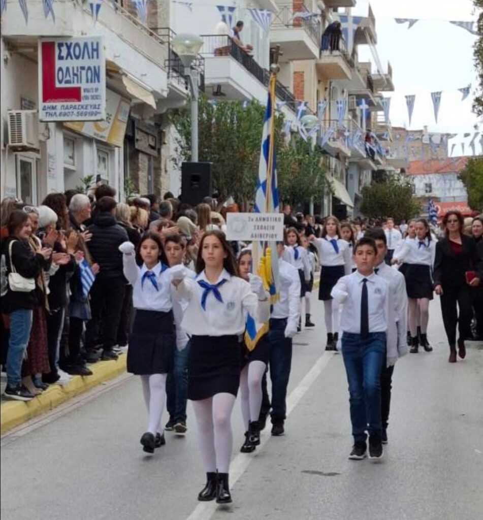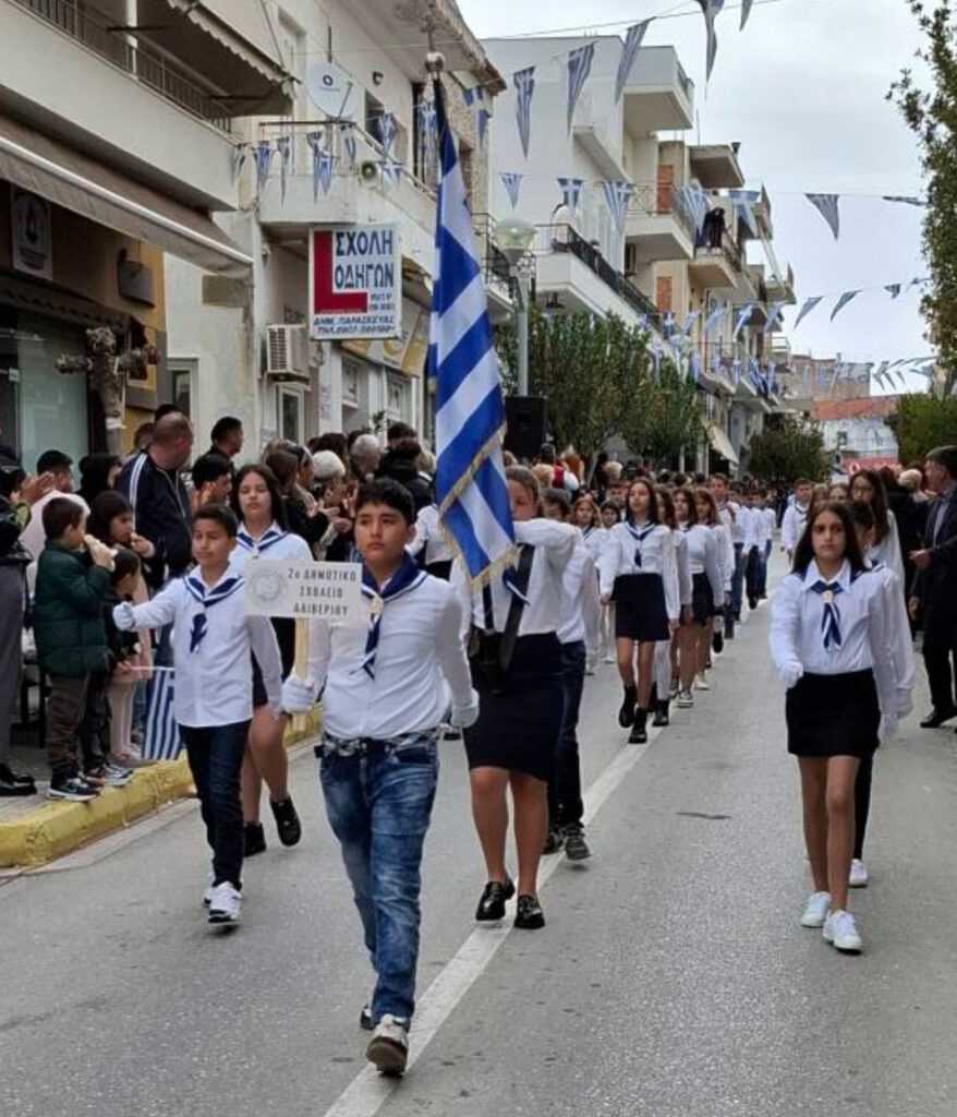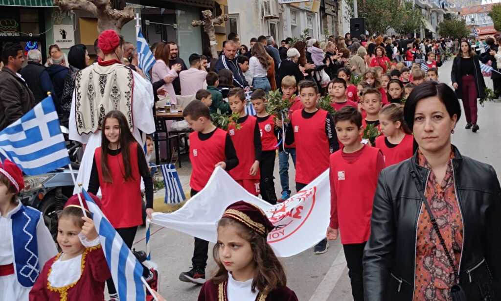 Ακολούθησε η Παρέλαση της Σημαίας από τους μαθητές των σχολείων, Σωματείων και Συλλόγων, πολιτιστικών και αθλητικών.