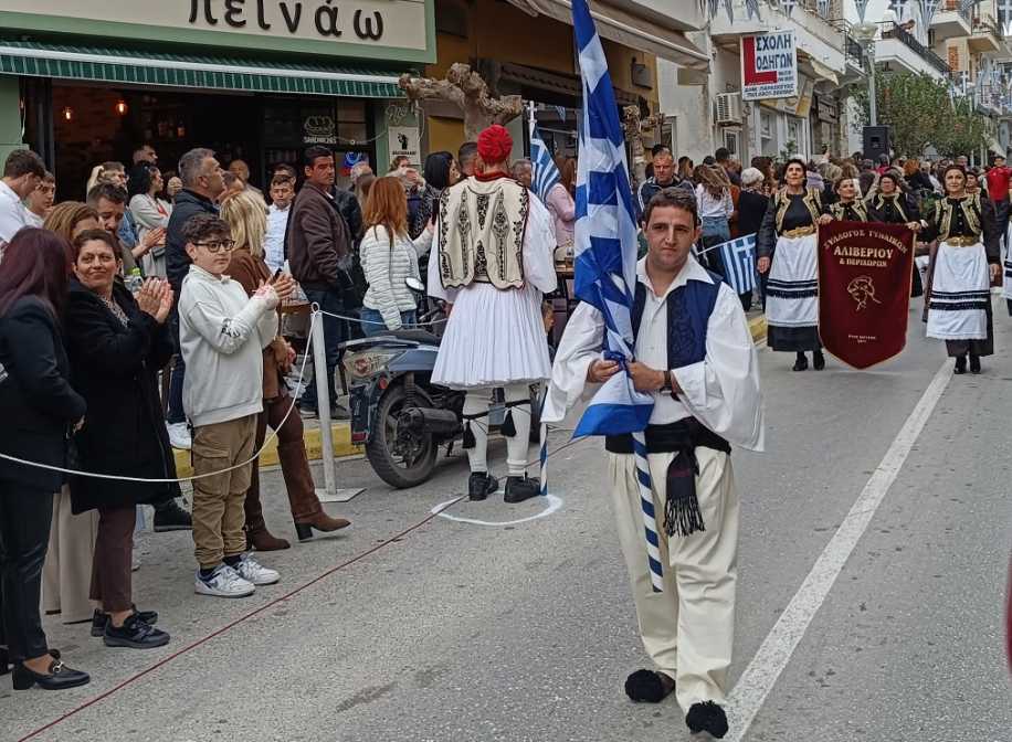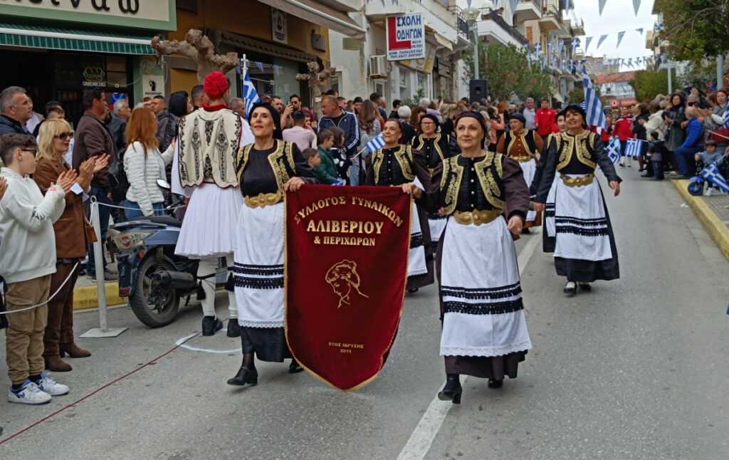 Οι επετειακές εκδηλώσεις ολοκληρώθηκαν στο κέντρο της πόλης με υπέροχα χορευτικά σύνολα και παραδοσιακές χορευτικές παρουσιάσεις από το Πνευματικό Κέντρο Αλιβερίου ο «Άγιος Γεώργιος», τον Σύλλογο Γυναικών Αλιβερίου και Περιχώρων και το Εργαστήριο Παραδοσιακών χορών του ΕΠΑΛ Αλιβερίου και του 2ου ΓΕΛ Αλιβερίου που κέρδισε τις καλύτερες εντυπώσεις, με υπεύθυνο τον Καθηγητή Φυσικής Αγωγής κ. Νίκο Παπαδόπουλο.