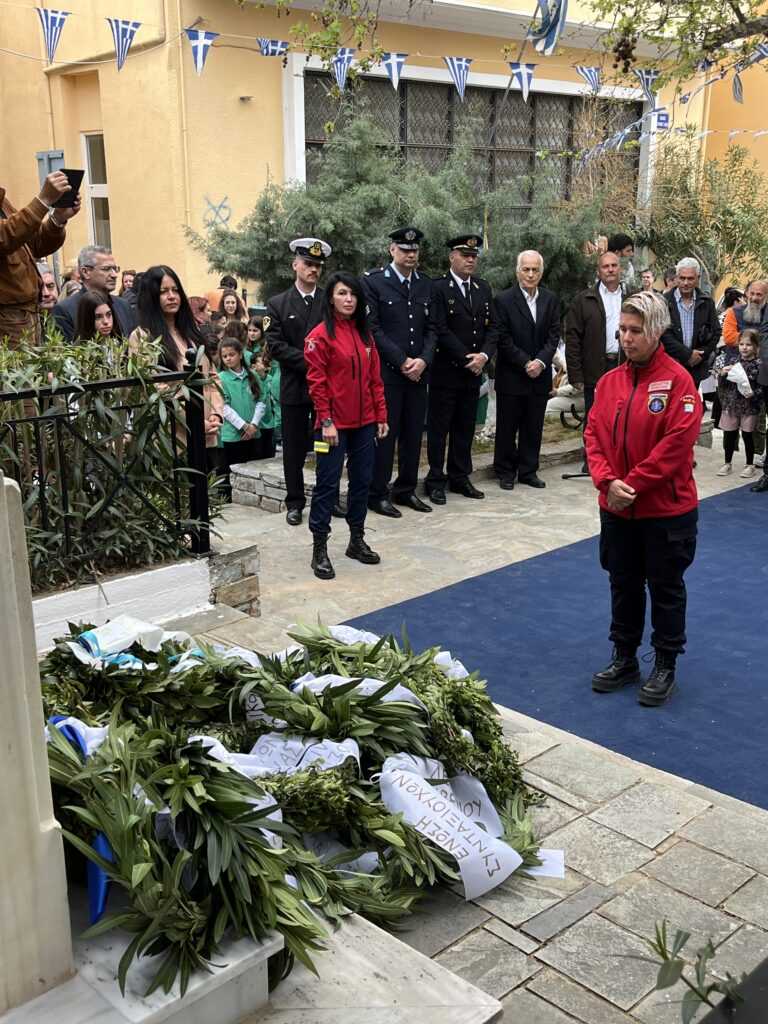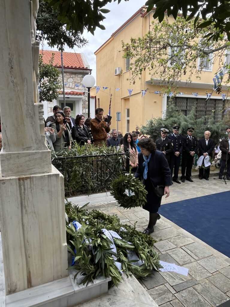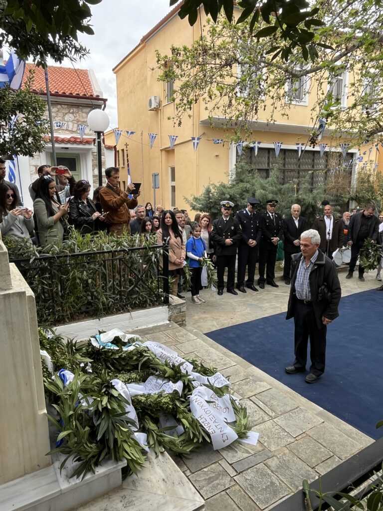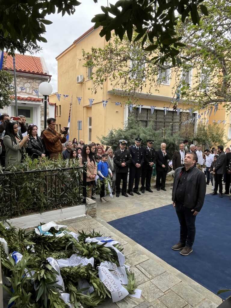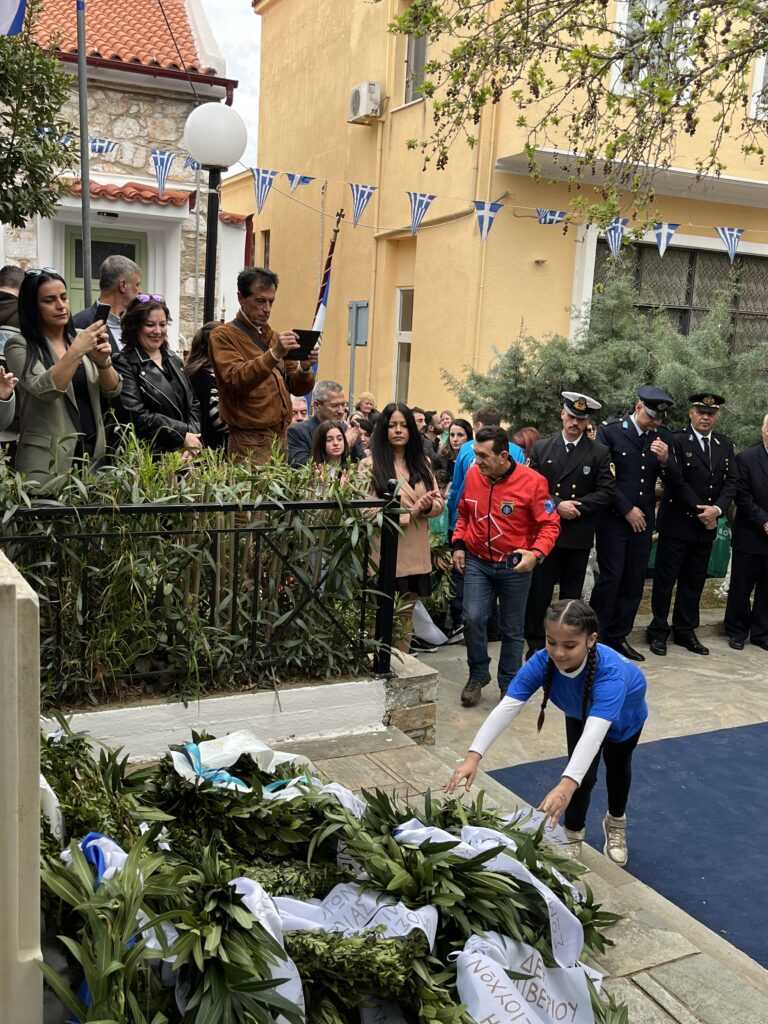 Αμέσως μετά στην πλατεία των Ηρώων τελέσθηκε η επιμνημόσυνη δέηση από τους Πανοσιολιγιώτατους Αρχιμανδρίτες κ. Αμφιλόχιο Διακάκη και κ. Νικόδημο Τσιμόγιαννη. Στη συνέχεια έγινε η κατάθεση των δάφνινων στεφάνων, ξεκινώντας ο Δήμαρχος Κύμης-Αλιβερίου κ. Νικόλαος Μπαράκος και εν συνεχεία οι Διοικητές των Σωμάτων Ασφαλείας και του Λιμενικού Σώματος, ο Πρόεδρος της Κοινότητας Αλιβερίου κ. Προκόπιος Αλέξης, οι σχολικές μονάδες της Κοινότητας Αλιβερίου, οι τοπικοί Σύλλογοι και Σωματεία πολιτιστικά, αθλητικά και συνδικαλιστικά.