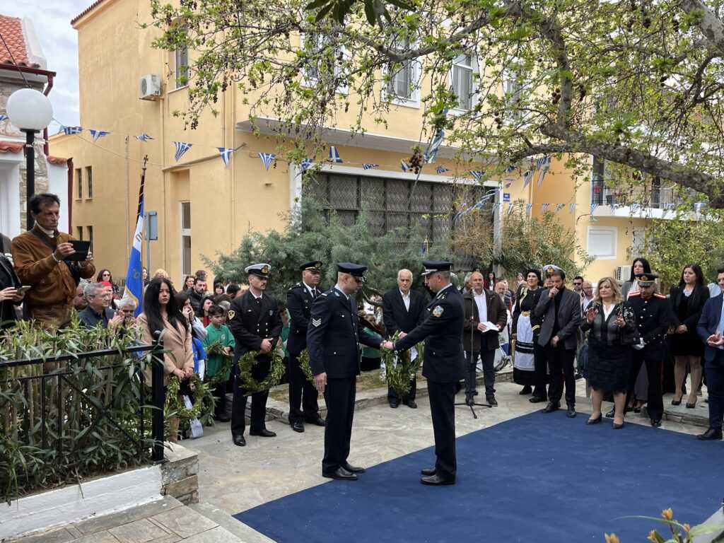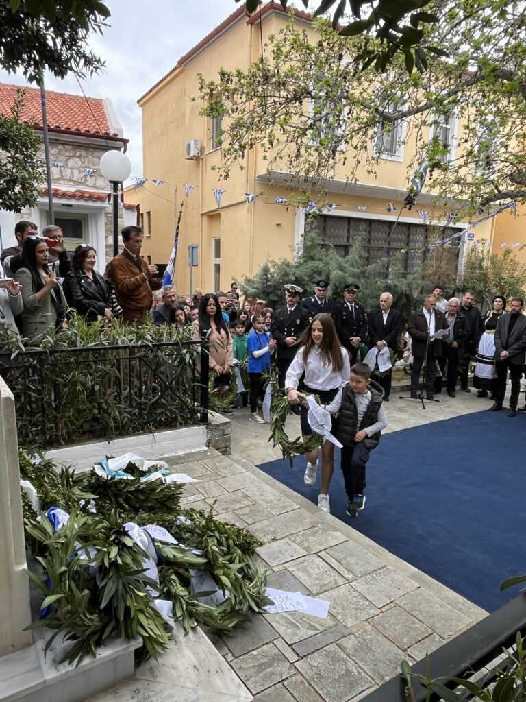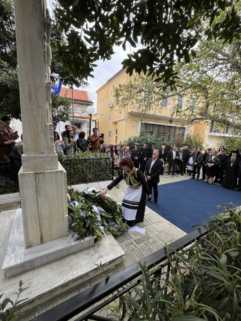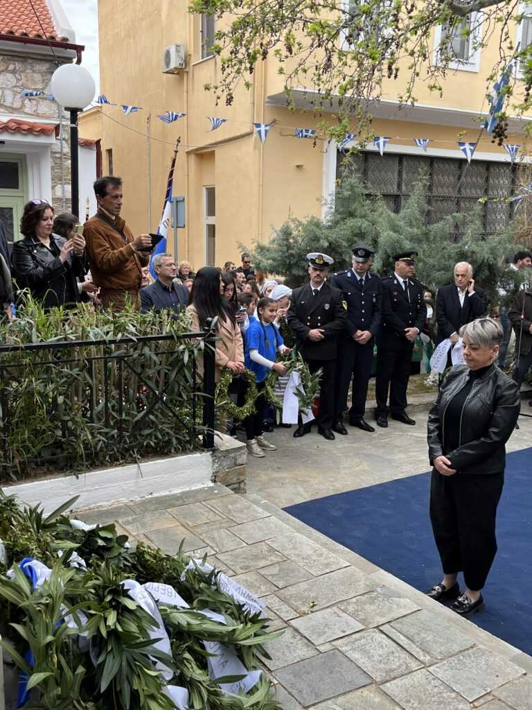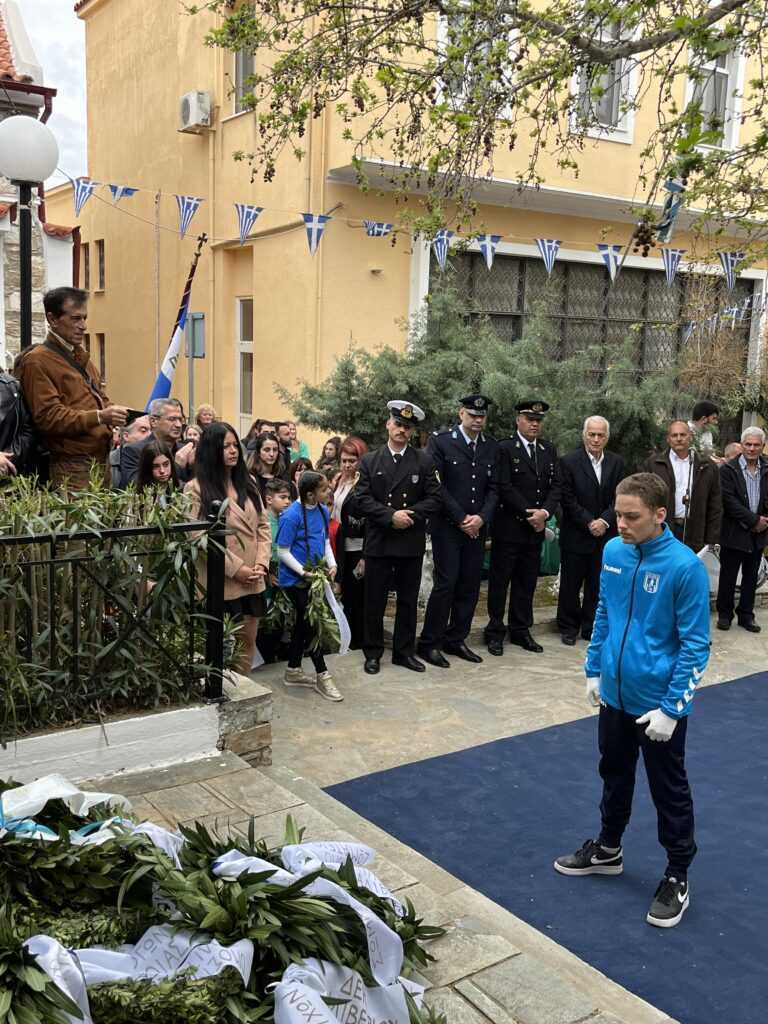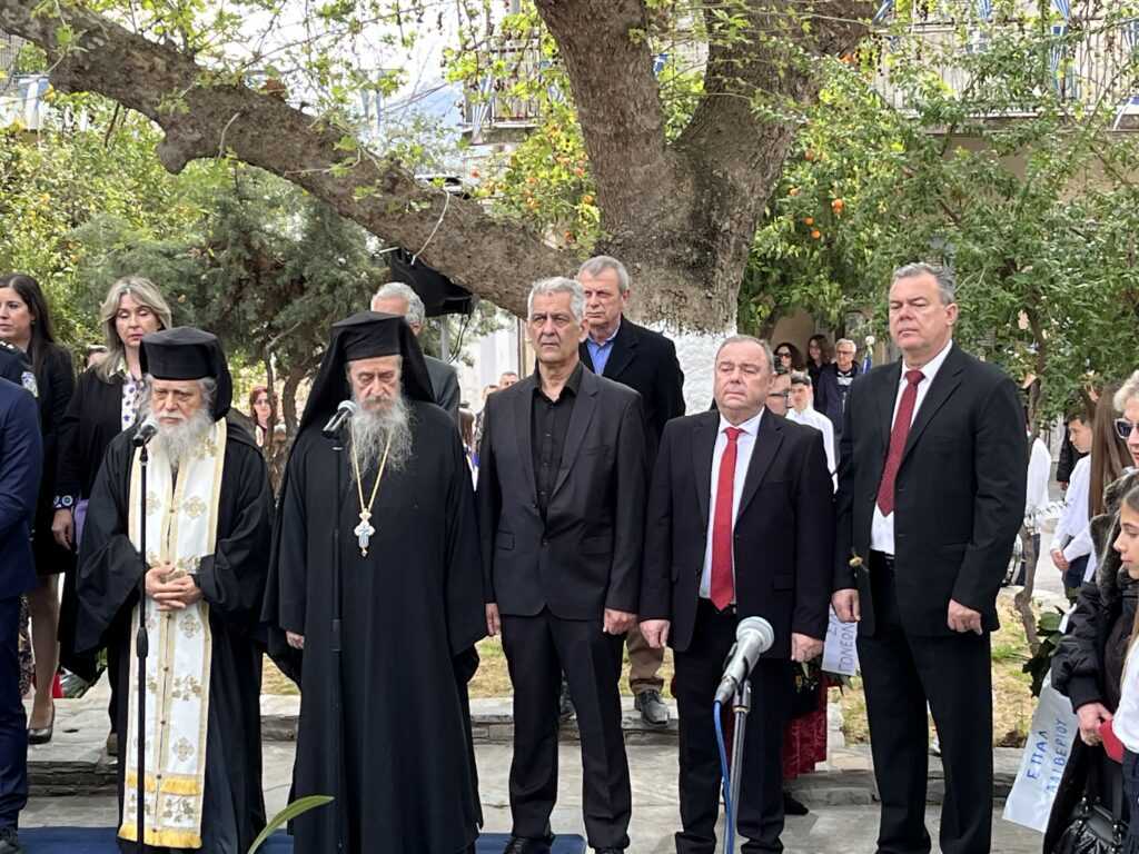 Αμέσως μετά στην πλατεία των Ηρώων τελέσθηκε η επιμνημόσυνη δέηση από τους Πανοσιολιγιώτατους Αρχιμανδρίτες κ. Αμφιλόχιο Διακάκη και κ. Νικόδημο Τσιμόγιαννη. Στη συνέχεια έγινε η κατάθεση των δάφνινων στεφάνων, ξεκινώντας ο Δήμαρχος Κύμης-Αλιβερίου κ. Νικόλαος Μπαράκος και εν συνεχεία οι Διοικητές των Σωμάτων Ασφαλείας και του Λιμενικού Σώματος, ο Πρόεδρος της Κοινότητας Αλιβερίου κ. Προκόπιος Αλέξης, οι σχολικές μονάδες της Κοινότητας Αλιβερίου, οι τοπικοί Σύλλογοι και Σωματεία πολιτιστικά, αθλητικά και συνδικαλιστικά.