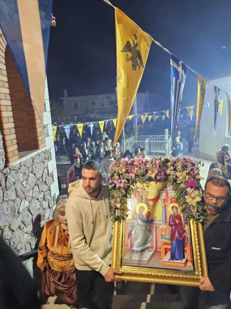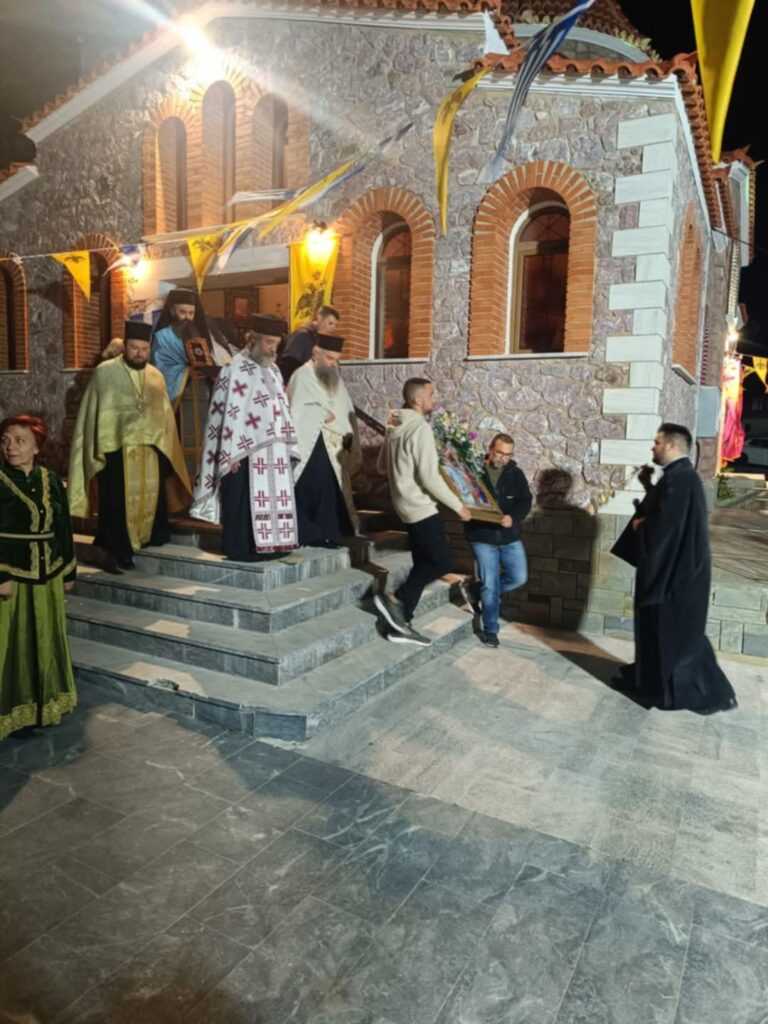 Μετά την τέλεση του Πανηγυρικού Εσπερινού μετά Αρτοκλασίας, για τη μεγάλη Θεομητορική και Δεσποτική γιορτή του Ευαγγελισμού της Θεοτόκου, ακολούθησε Ιερά Λιτανεία των Τιμίων Λειψάνων, στο χωριό περιμετρικά της Ενορίας. Το τιμητικό άγημα συνόδευσαν μέλη του Πανευβοϊκού Συλλόγου Καππαδοκών «Ο Άγιος Ιωάννης Ρώσσος», γυναίκες και άνδρες ντυμένοι με τις παραδοσιακές φορεσιές τους.