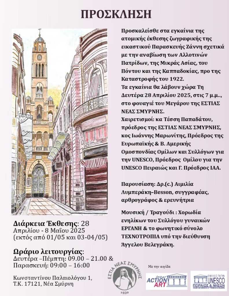 Η έκθεση ζωγραφικής της κας Ζάννη αφορά την αναβίωση Αλλοτινών Πατρίδων, της Μικράς Ασίας, του Πόντου, της Καππαδοκίας προ της Καταστροφής του 1922.