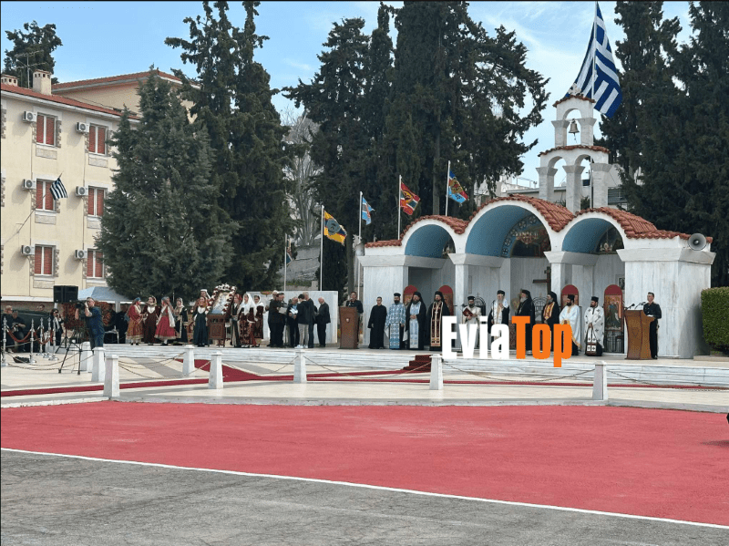 Αμέσως μετά, στη Σχολή Πεζικού Χαλκίδος, έλαβε χώρα η επίσημη δοξολογία του Πεζικού προεξάρχοντος του Σεβασμιωτάτου Μητροπολίτου Χαλκίδος κ. Χρυσοστόμου, παρουσία των επικεφαλής ή εκπροσώπων των πολιτικών και στρατιωτικών αρχών της Πατρίδος μας.