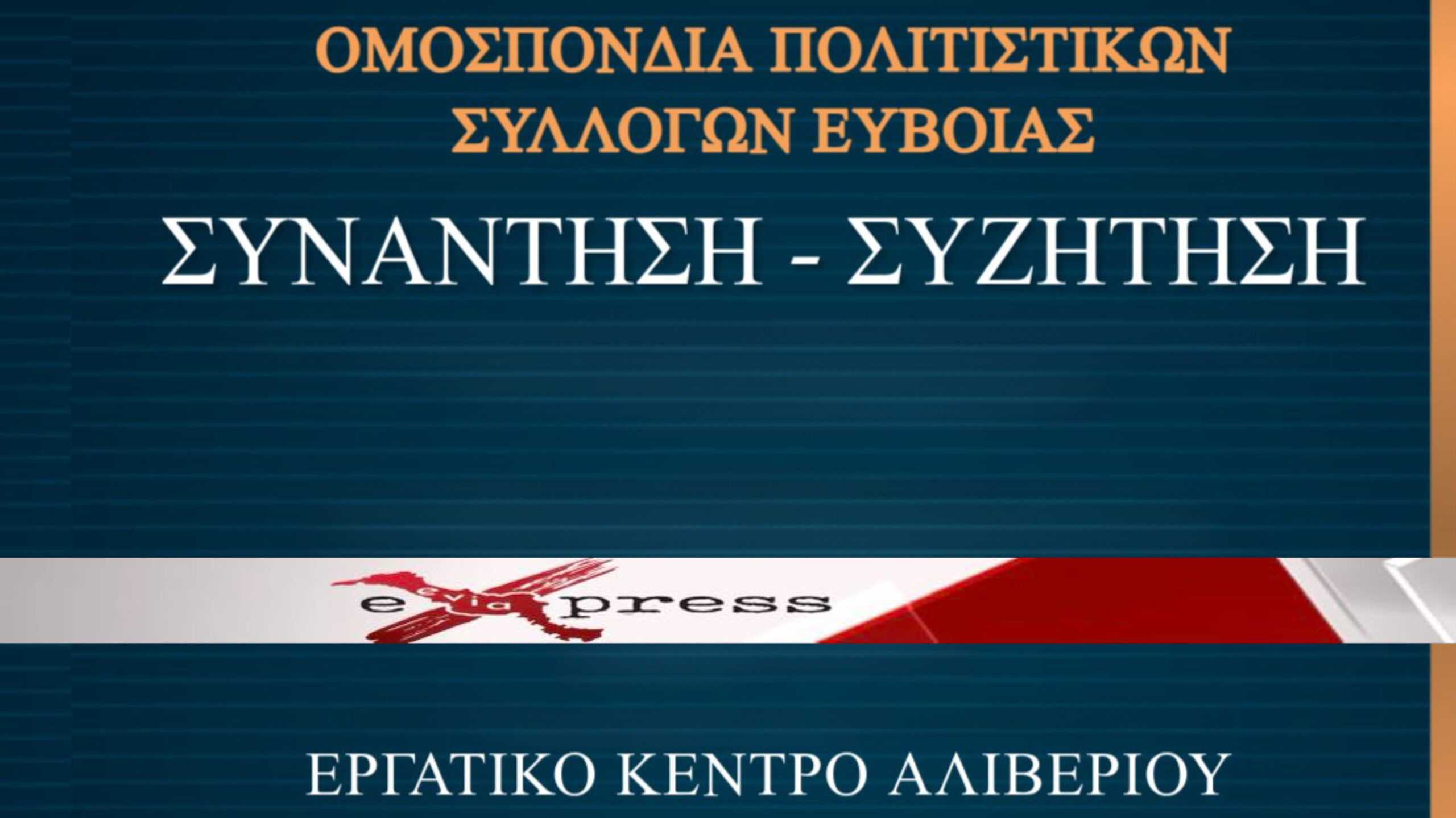 Η Ομοσπονδία Πολιτιστικών Συλλόγων Ευβοίας “ανοίγει τον κύκλο” των ΣΥΝΑΝΤΗΣΕΩΝ-ΣΥΖΗΤΗΣΕΩΝ με τους εκπροσώπους των Πολιτιστικών Συλλόγων της Εύβοιας.
