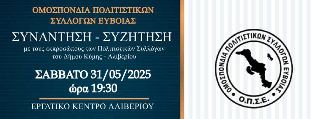 ξεκινώντας το Σάββατο 31/05/2025 και ώρα 19:30, με τους εκπροσώπους του Δήμου Κύμης – Αλιβερίου, στο Εργατικό Κέντρο Αλιβερίου.