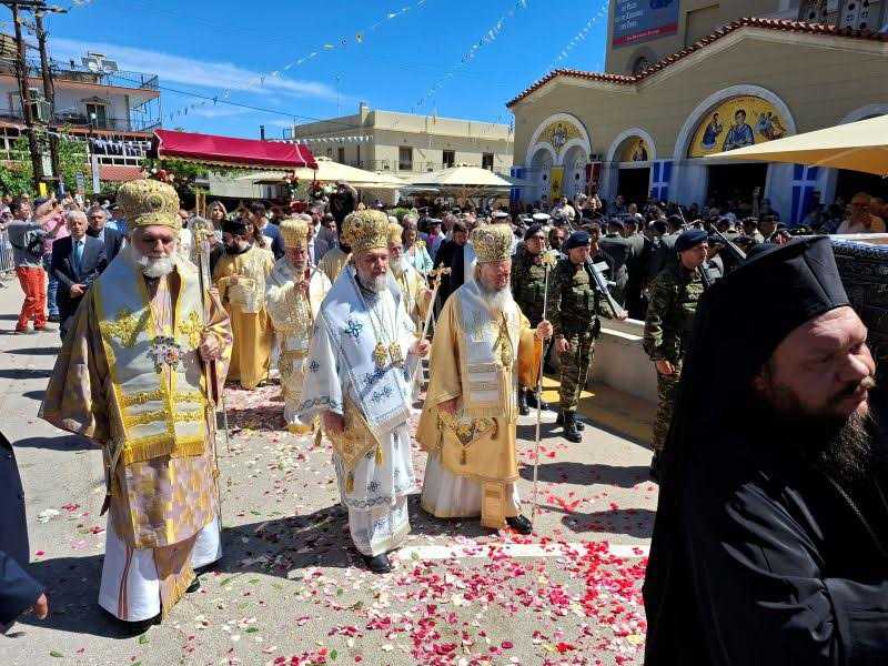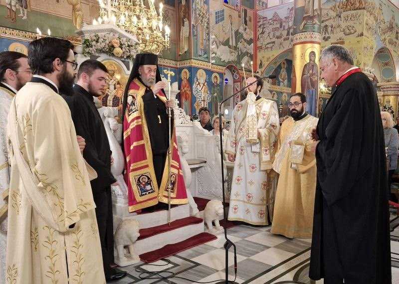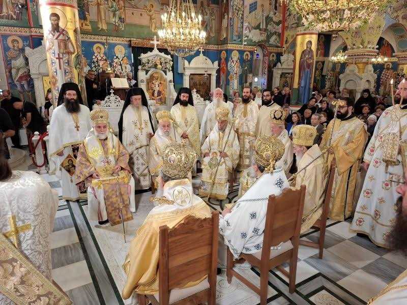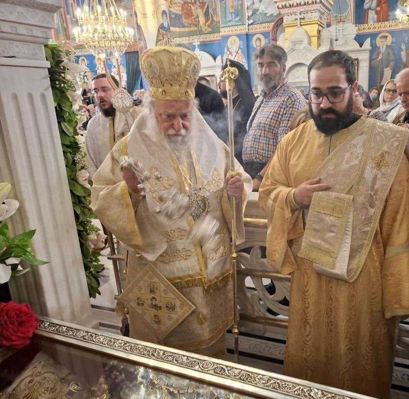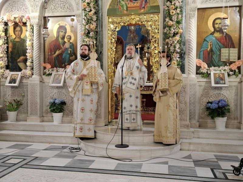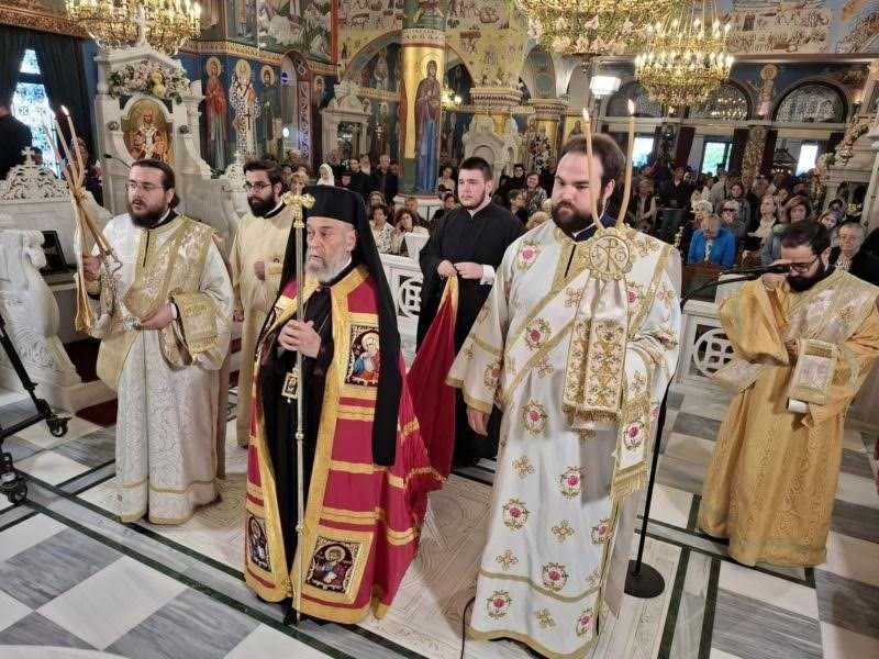 Στον Όρθρο χοροστάτησε ο Σεβασμιώτατος Μητροπολίτης Ειρηνουπόλεως κ. Νίκανδρος, ενώ, του Αρχιερατικού Συλλειτούργου προέστη και κήρυξε τον θείο λόγο ο Σεβασμιώτατος Μητροπολίτης Καρυστίας και Σκύρου κ. Σεραφείμ, συμπαραστατούμενος από τους Σεβασμιωτάτους Μητροπολίτες Ειρηνουπόλεως κ. Νίκανδρο, Κορίνθου κ. Διονύσιο, Γρεβενών κ. Δαβίδ, Γόρτυνος και Μεγαλοπόλεως κ. Νικηφόρο, τον Θεοφιλέστατο Επίσκοπο Σκοπέλου κ. Νικόδημο και τον Σεβασμιώτατο Ποιμενάρχη μας, Μητροπολίτη Χαλκίδος κ. Χρυσόστομο.
