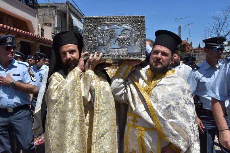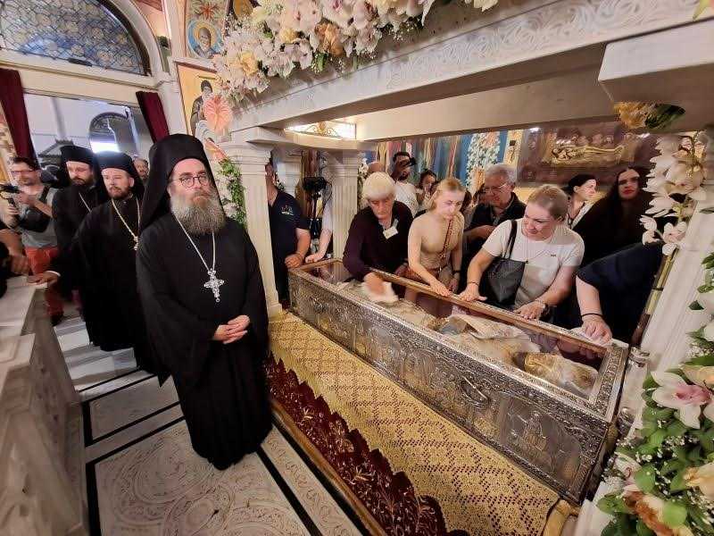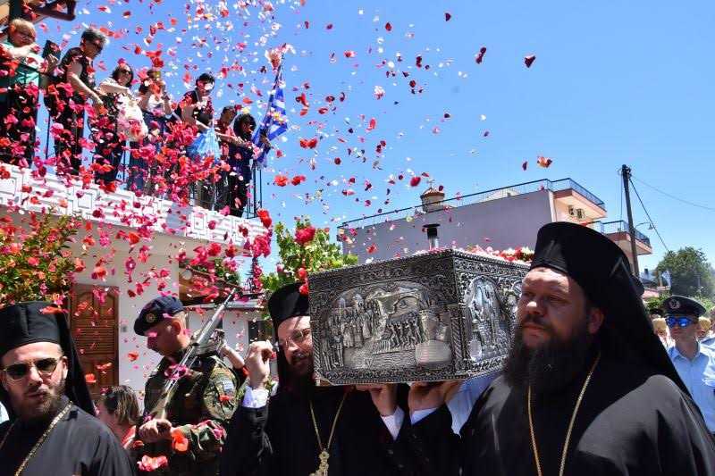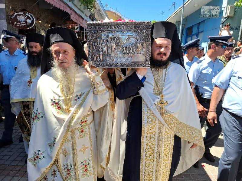 Ο Σεβασμιώτατος Μητροπολίτης Χαλκίδος κ. Χρυσόστομος απευθύνθηκε με ευγνωμοσύνη στους αγίους Αρχιερείς, που συμμετείχαν στην πανήγυρη, στον αρχηγό της μείζονος αντιπολίτευσης κ. Νίκο Ανδρουλάκη και στους λοιπούς αιρετούς άρχοντες, στους εκπροσώπους των στρατιωτικών αρχών και των σωμάτων ασφαλείας, στους ιεροψάλτες του Ι. Προσκυνήματος κ. Θεοδόσιο Στεργιόπουλο και κ. Νικόλαο Ενωτιάδη και τις χορωδίες τους, στις φιλαρμονικές του Λιμενικού Σώματος και του Δήμου Χαλκιδέων, στα μέλη του διοικητικού συμβουλίου του Ι. Προσκυνήματος και σε κάθε εθελοντή ή έμμισθο συντελεστή της πανηγύρεως. Επίσης ευχήθηκε σε όσους και όσες φέρουν το όνομα του Οσίου, εξαίροντας, μεταξύ αυτών, τον Αρχιγραμματέα της Ιεράς Συνόδου της Εκκλησίας της Ελλάδος αρχιμ. Ιωάννη Καραμούζη.