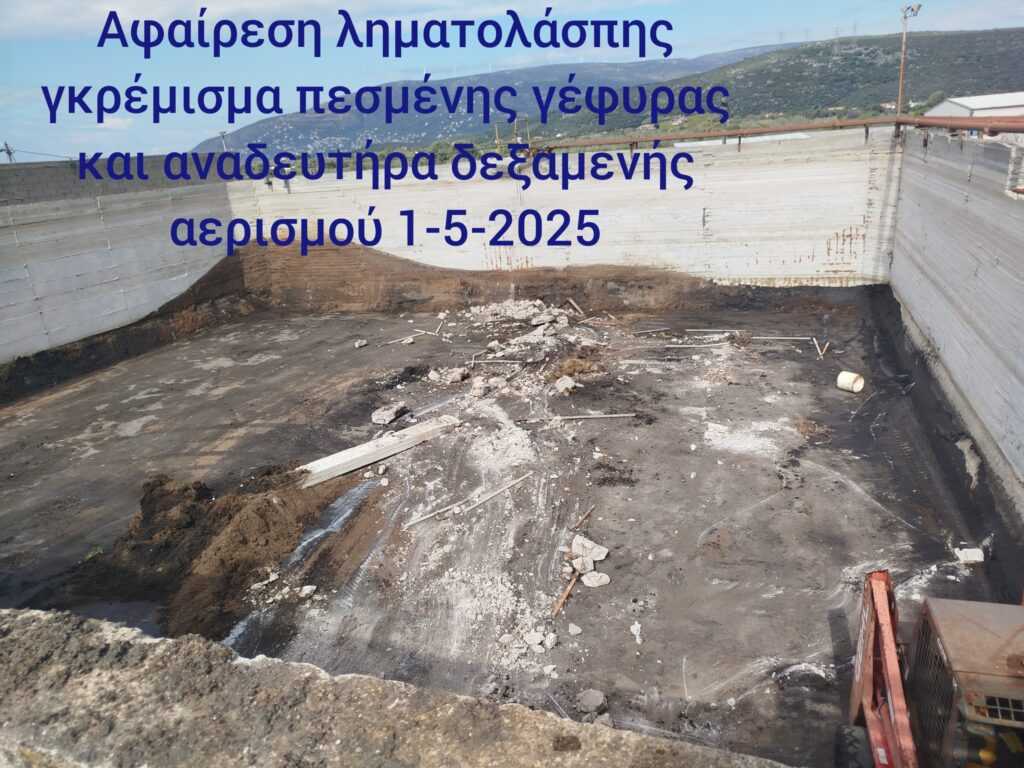 Αποξήλωση της σπασμένης μπετονένιας βάσης στήριξης του επιφανειακού αεριστήρα καθώς και των σπασμένων κολώνων στήριξης αυτού,