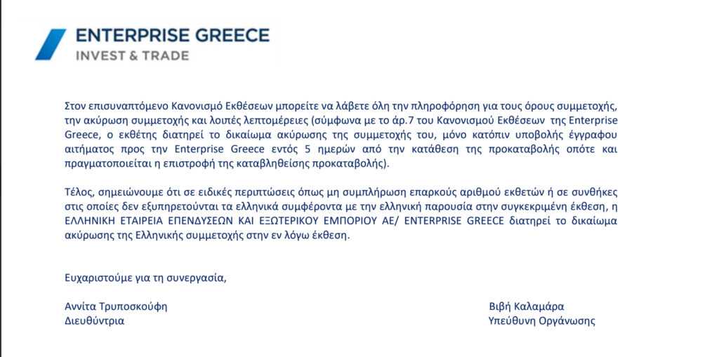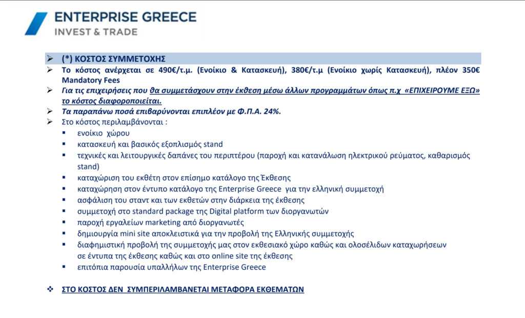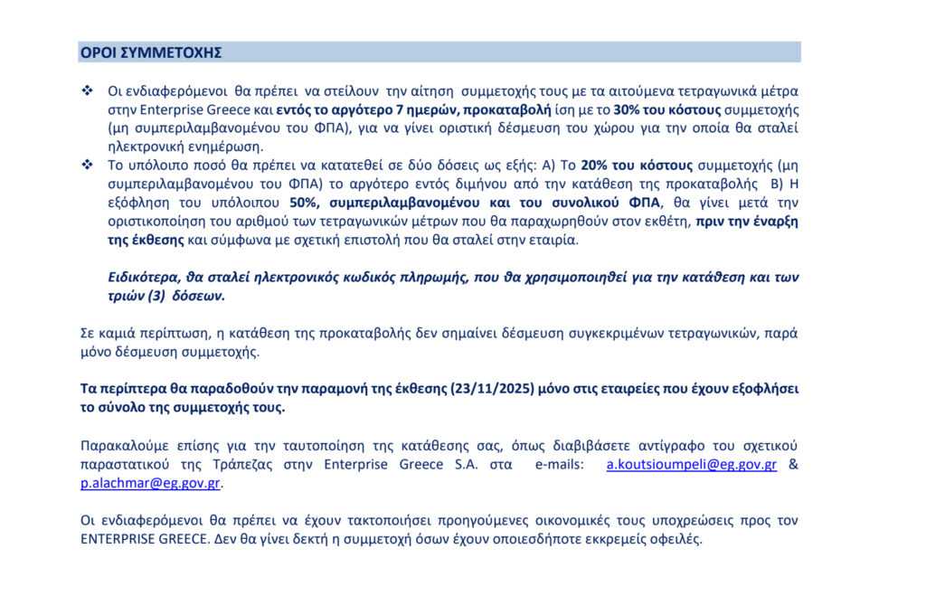 Παρακαλούμε τις επιχειρήσεις που επιθυμούν να συμμετέχουν στην έκθεση, να