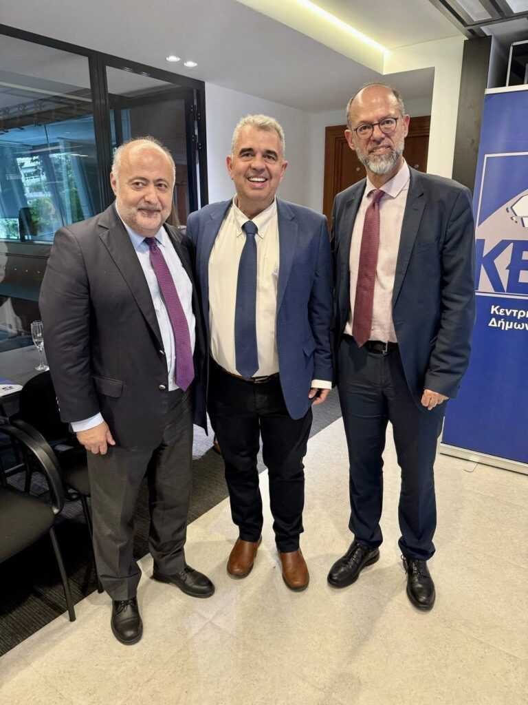 Στην σημερινή συνάντηση της ΚΕΔΕ με τους Ευρωβουλευτές, τον πρόεδρο της Επιτροπής Περιβάλλοντος, Κλιματικής Αλλαγής και Ενέργειας της Ευρωπαϊκής Επιτροπής των Περιφερειών Κώστα Μπακογιάννη και τον Γάλλο Πρέσβη, ο Δήμαρχος Καρύστου Λευτέρης Ραβιόλου, είχε την ευκαιρία να συζητήσει μαζί τους τα θέματα αρμοδιότητάς τους και να μοιραστούν απόψεις.