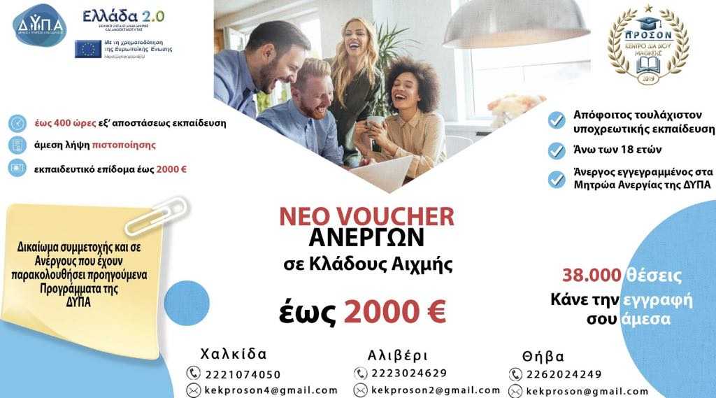 Το νέο VOUCHER ΑΝΕΡΓΩΝ αφορά Κλάδους Αιχμής και απευθύνεται ακόμη και σε Ανέργους που έχουν παρακολουθήσει προηγούμενα Προγράμματα της ΔΥΠΑ.