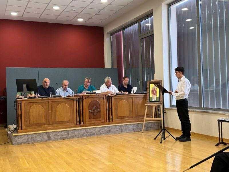 Αμέσως μετά, ο Σεβασμιώτατος κ. Χρυσόστομος μετέβη στο Πολιτιστικό-Πνευματικό Κέντρο της Ιεράς Μητροπόλεως Χαλκίδος, όπου παρέστη στη διεξαγωγή των διπλωματικών εξετάσεων σπουδαστών της Σχολής Βυζαντινής Μουσικής της Ιεράς Μητροπόλεως Χαλκίδος, ενώπιον της εντεταλμένης εξεταστικής επιτροπής του Υπουργείου Πολιτισμού.