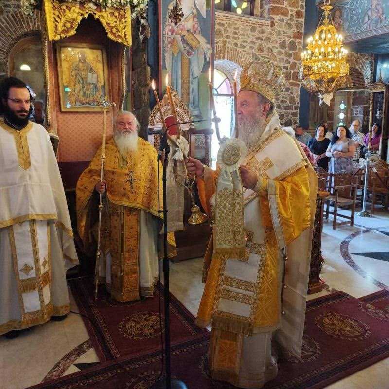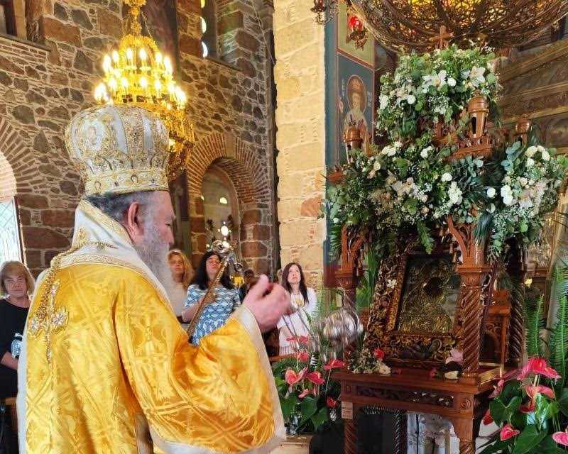 Ο Σεβασμιώτατος χοροστάτησε κατά τον Όρθρο και προέστη της Θείας Λειτουργίας, με συλλειτουργούς τον αρχιμ. Θεόφιλο-εκπρόσωπο της Ιεράς Μονής και Κληρικούς της τοπικής μας Εκκλησίας, ενώ εκκλησιάσθηκαν πολλοί προσκυνητές και, ταυτόχρονα, επίσης πολλοί ήταν όσοι προσέρχονταν να προσκυνήσουν το θεομητορικό θαυματουργό εικόνισμα.