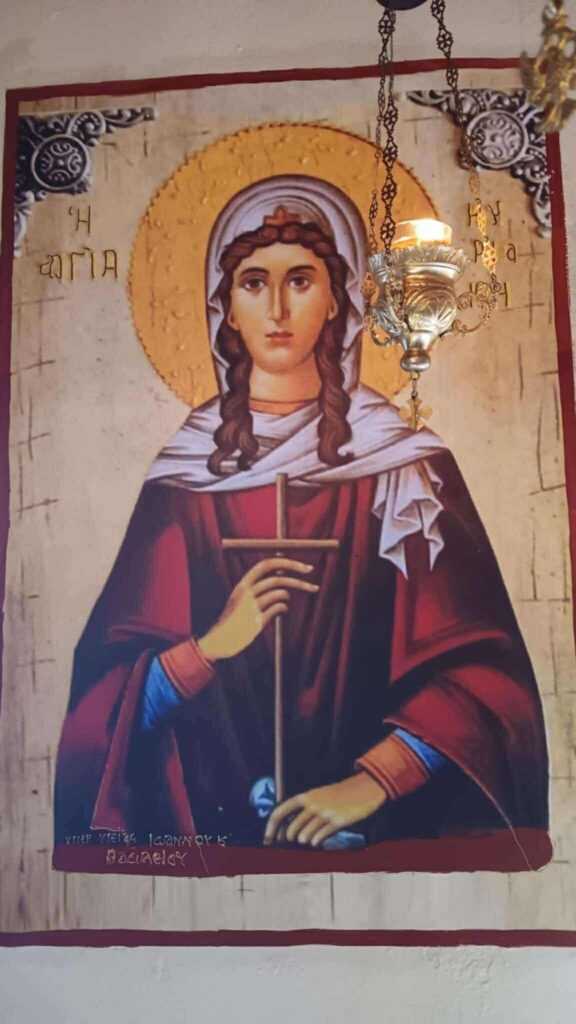 “Με ιδιαίτερη κατάνυξη και θρησκευτική λαμπρότητα τελέστηκε και φέτος η ιερά μνήμη της Αγίας Μεγαλομάρτυρος Κυριακής στο πανηγυρίζον και γραφικό ιερό παρεκκλήσιο της, που βρίσκεται στο ρέμα Ανάβρας, του κτήματος Παπασταμόπουλου, το οποίο υπάγεται στον Ιερό Ναό Αγίου Παντελεήμονος Λουτροπόλεως Αιδηψού.