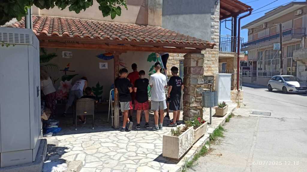 Τα παιδιά στο Όριο του Δήμου Κύμης Αλιβερίου έπιασαν τα πινέλα και τα χρώματα, με καμβά τον αδιάφορο τοίχο στην στάση του λεωφορείου, σε κάποιο κεντρικό σημείο του δρόμου που διασχίζει το χωριό, φωτίζοντας αρχικά τα δικά τους πρόσωπα με τεράστια χαμόγελα κι έπειτα των μεγαλύτερων σε ηλικία κατοίκων που καμάρωσαν, δικαίως, για τη νεολαία του χωριού τους.