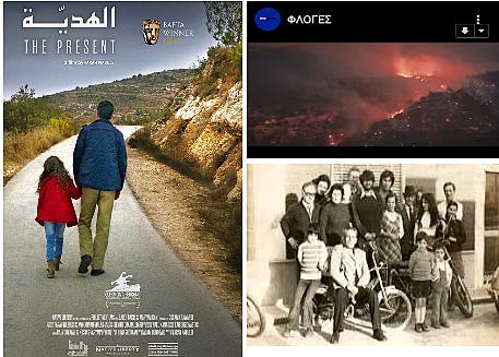 H 1η Ημέρα του Φεστιβάλ είχε τρία κύρια θέματα και προβολές (το πρόγραμμα της ημέρας μπορείτε να το δείτε εδώ). Τις ΦΛΟΓΕΣ (για τις φωτιές, Δημοσιογραφική επιμέλεια: Δημήτρης Καπετανάκης Σκηνοθεσία: Θοδωρής Καπετανάκης), το Παλαιστινιακό The Present (Το Δώρο, του Farah Nabulsi, 2020), που συγκλόνισε και άφησε τις καλύτερες εντυπώσεις κινηματογραφικά και το κλείσιμο του αφιερώματός μας για τα ελληνόφωνα χωριά της Καλαβρίας με την προβολή του Polemonta (Πολεμόντα) του Δημήτρη Μαυρίκιου. Στις προβολές αυτές υπήρχε συμμετοχή από το Athens Palestine Film Festival – Dounias.
