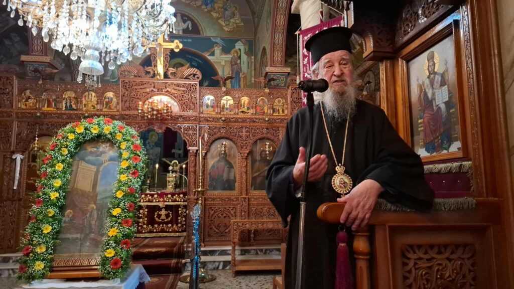 Στην ομιλία του ο Σεβασμιώτατος Μητροπολίτης κ.Σεραφείμ λαμβάνοντας αφορμή απο τα προφητικά αναγνώσματα της θεομητορικής εορτής αναφέρθηκε στο γεγονός και τα διδάγματα περί της εορτής της Γεννήσεως της Θεοτόκου τονίζοντας στους πιστούς ότι η Υπεραγία Θεοτόκος αποτελεί με την Γέννηση της προς όλους τους πιστούς την κλίμακα και την γέφυρα η μετάγουσα τους εκ γής προς ουρανό.