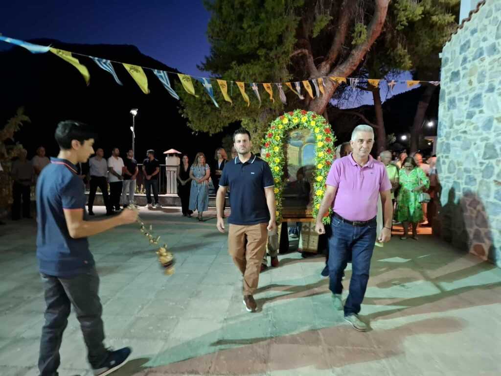 Μετά το πέρας του πανηγυρικού εσπερινού ακολούθησε η λιτάνευση της ιεράς εικόνος πέριξ του ιερού ναού στην οποία συμμετείχαν οι Προέδροι των Τοπικών Κοινοτήτων Παρθενίου κ. Γεώργιος Χαϊνάς Πρασίνου κ. Λάμπρος Γραβαρίτης καθώς επίσης συροή φιλέορτων πιστών απο το Παρθένι και απο την επαρχία Αλιβερίου.