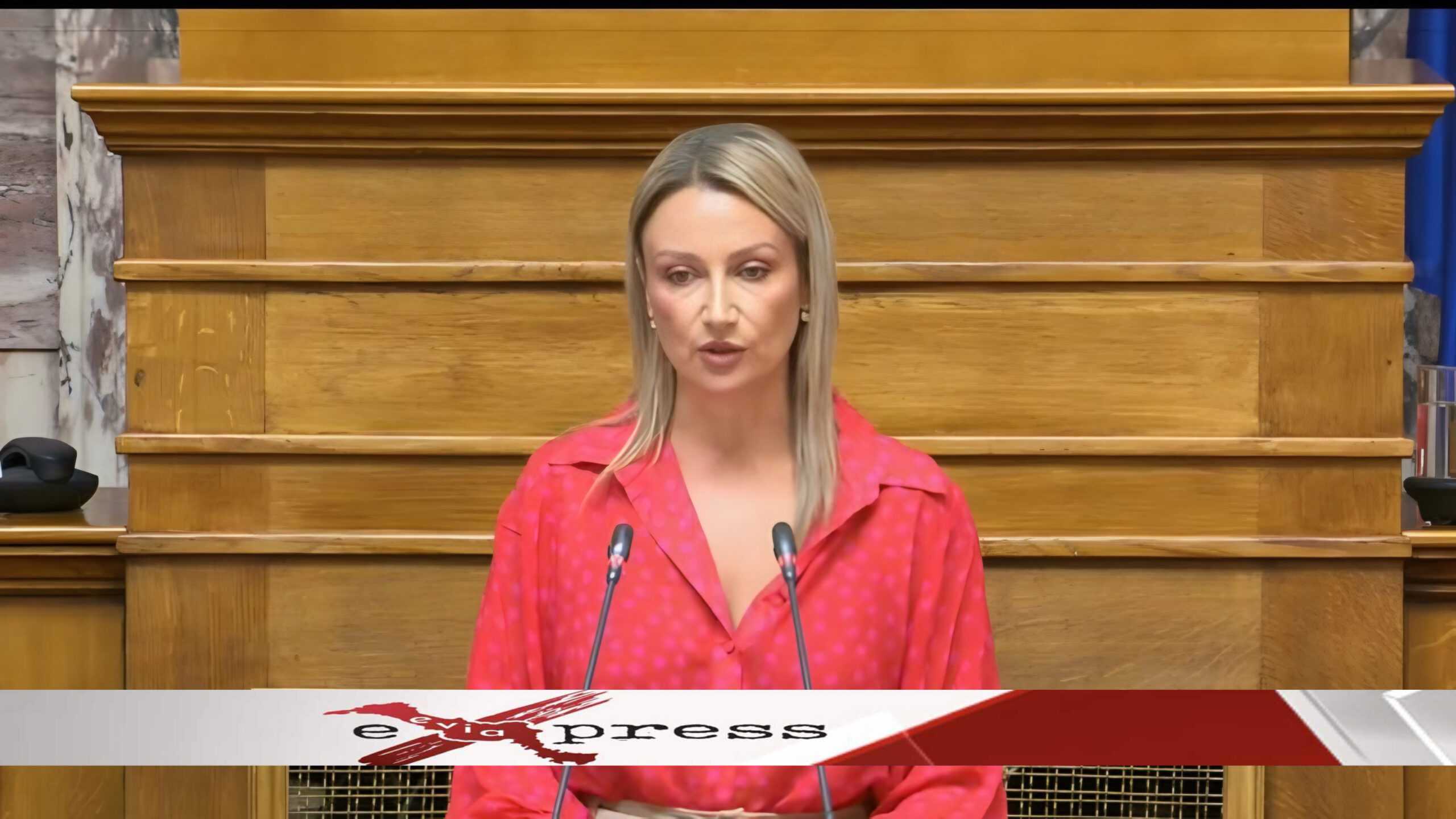 Η Βουλευτής Εύβοιας του ΠΑΣΟΚ – Κίνημα Αλλαγής, Αικατερίνη Καζάνη, κατά τη συζήτηση της