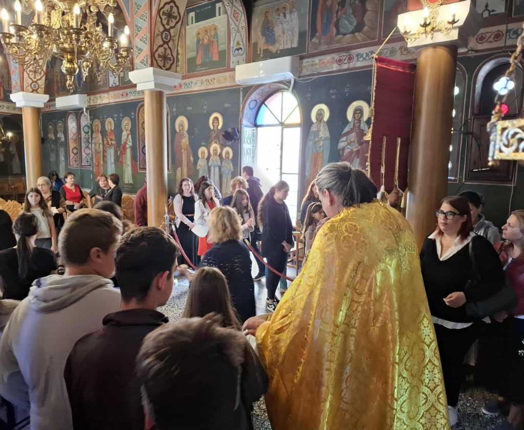 Στην Θεία Λειτουργία συμμετείχαν οι πιστοί της ενορίας και οι μαθητές του Γυμνασίου Γυμνό ώστε να ευχηθούν στον εφημέριο τους για την ονομαστική εορτή του.