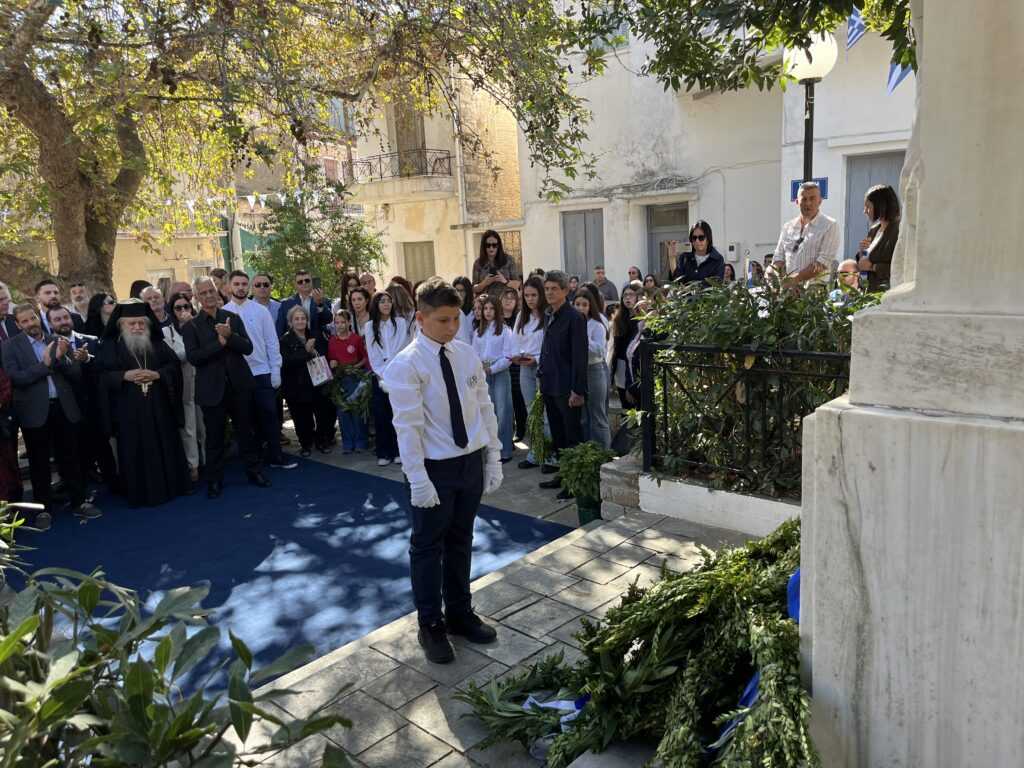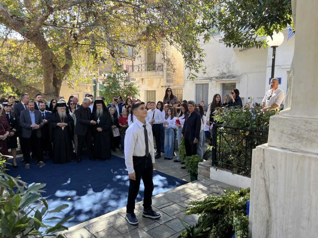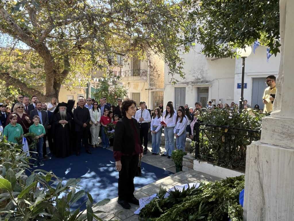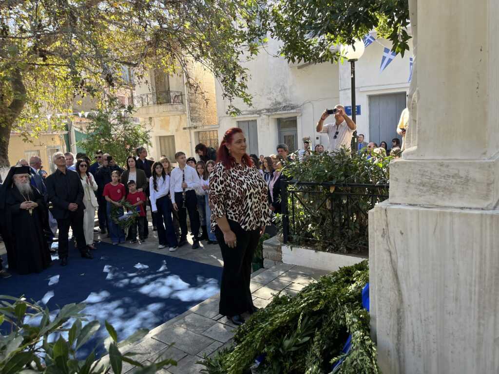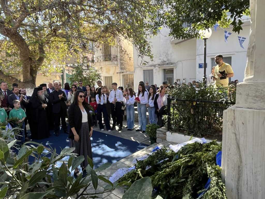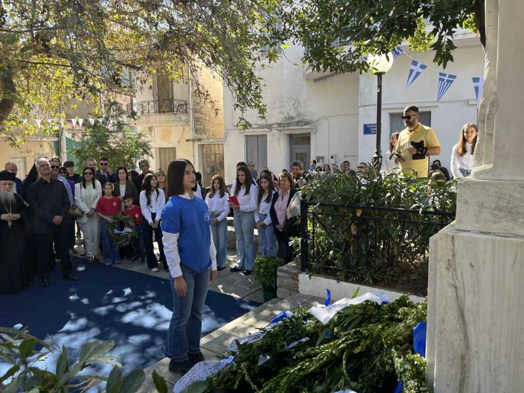 Κανείς δεν άκουσε το ποίημα της μαθήτριας μπροστά από το μνημείο, που κατέθεσε το στεφάνι εκ μέρους του Γυμνασίου Αλιβερίου.