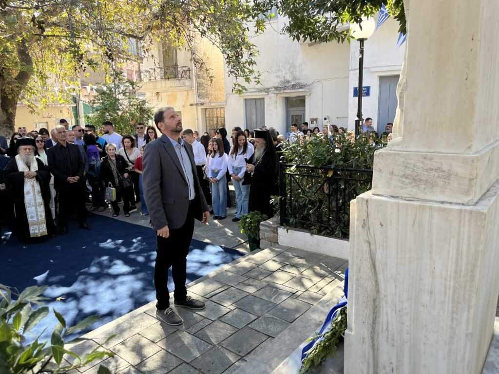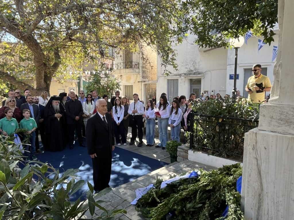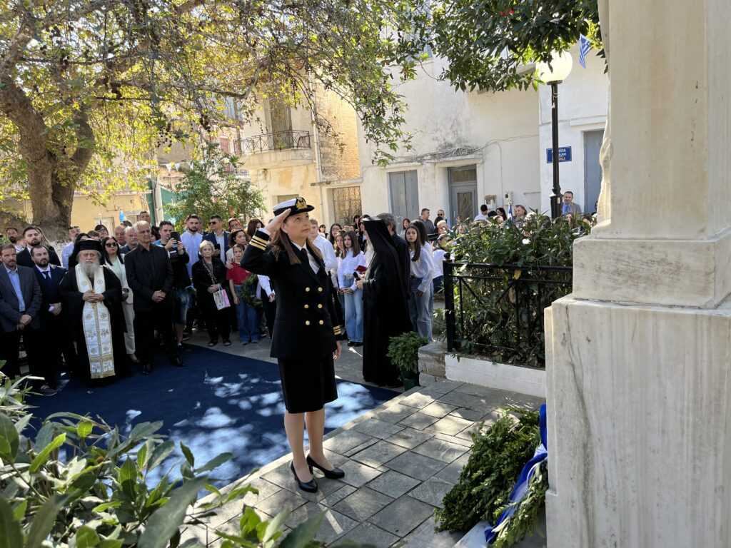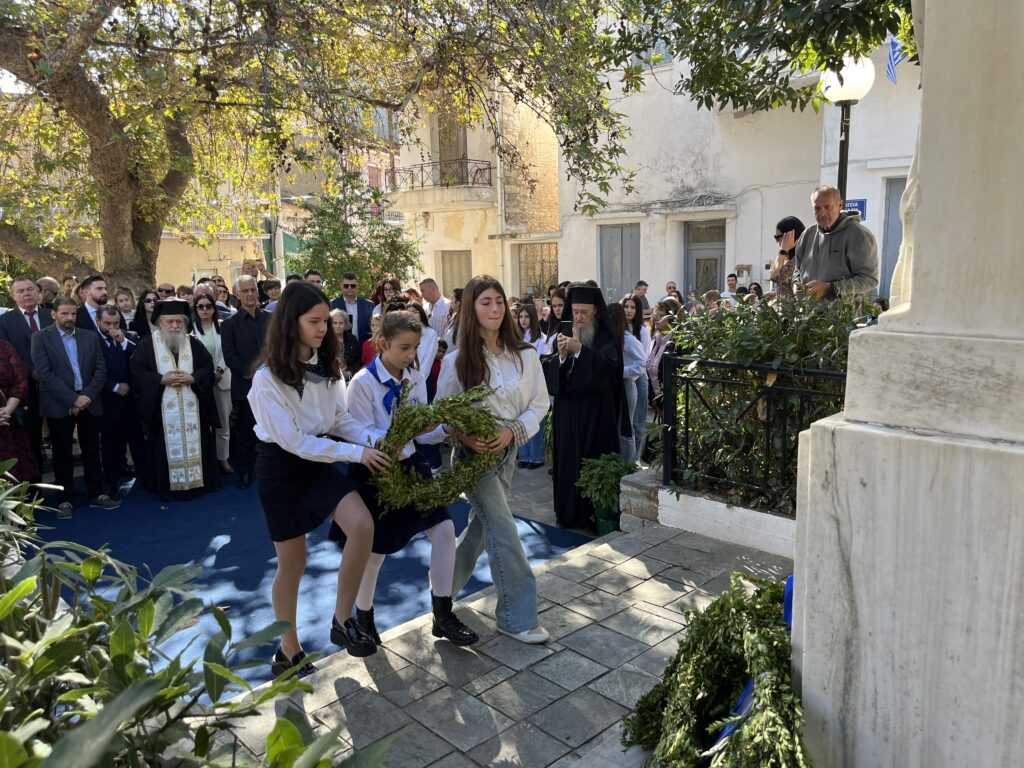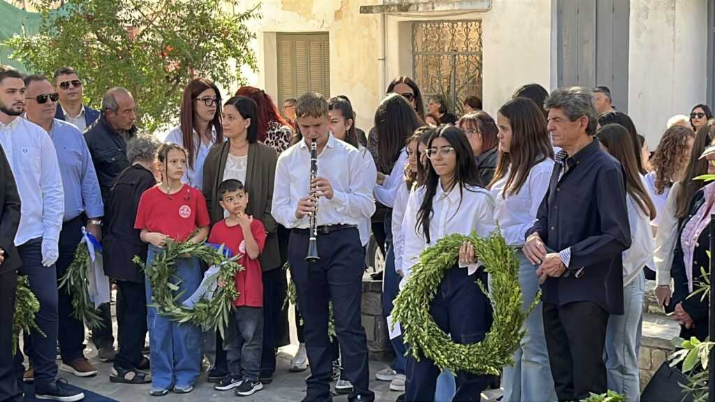Κανείς δεν άκουσε το ποίημα της μαθήτριας μπροστά από το μνημείο, που κατέθεσε το στεφάνι εκ μέρους του Γυμνασίου Αλιβερίου.