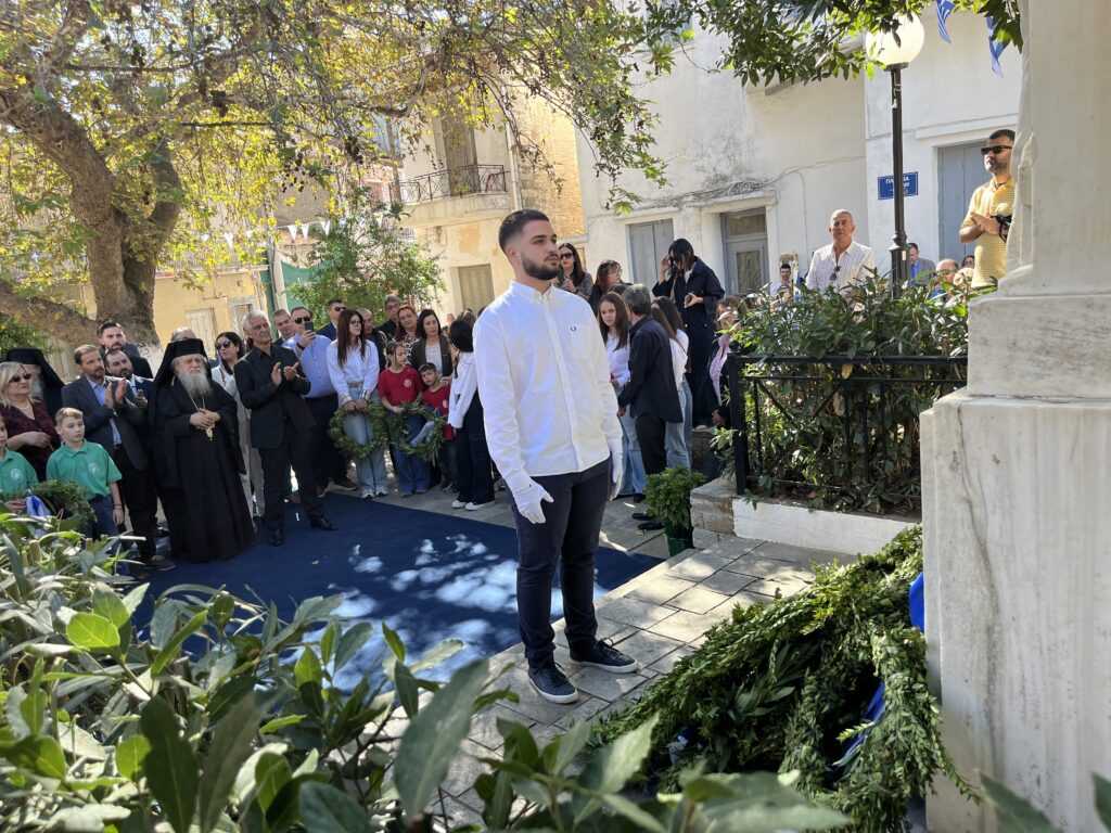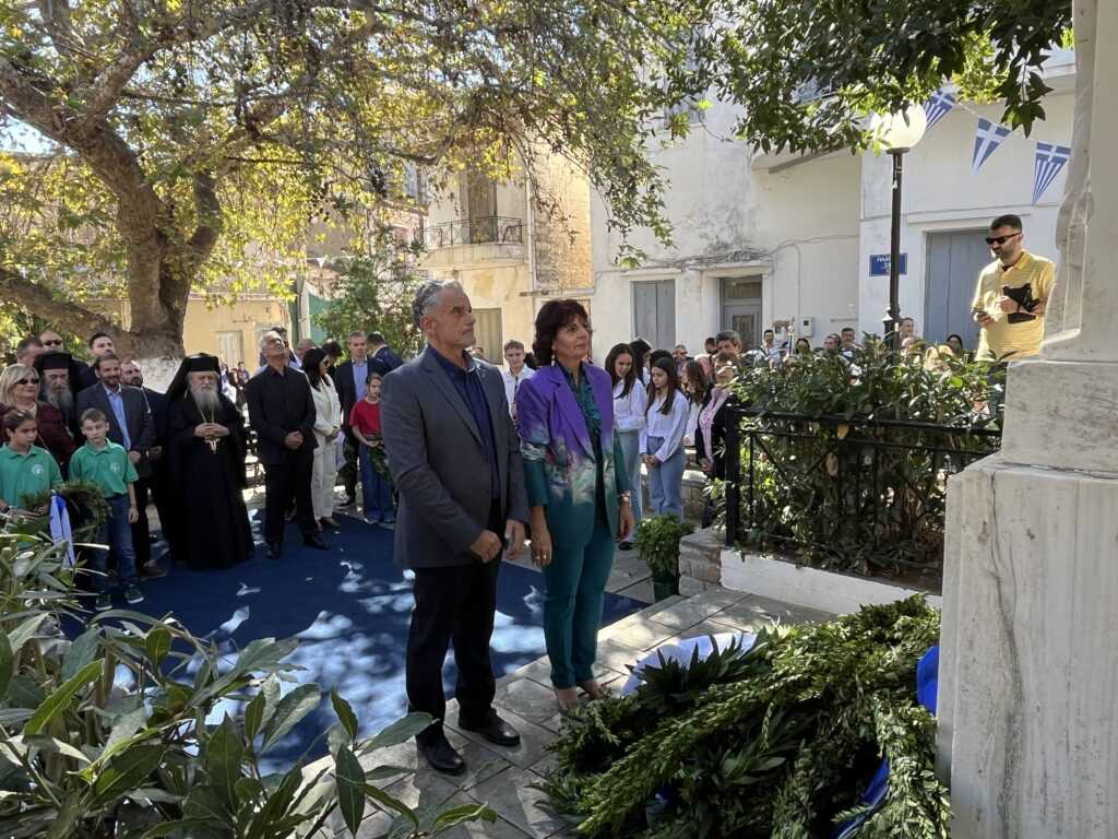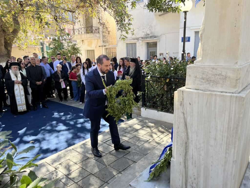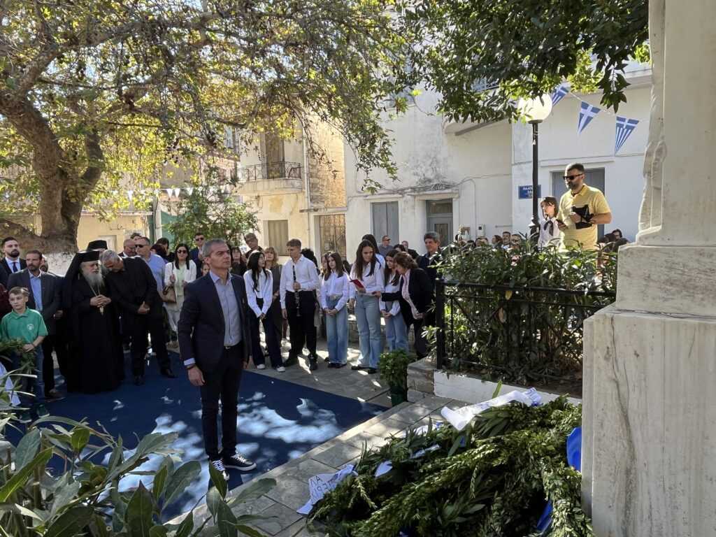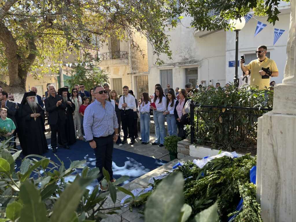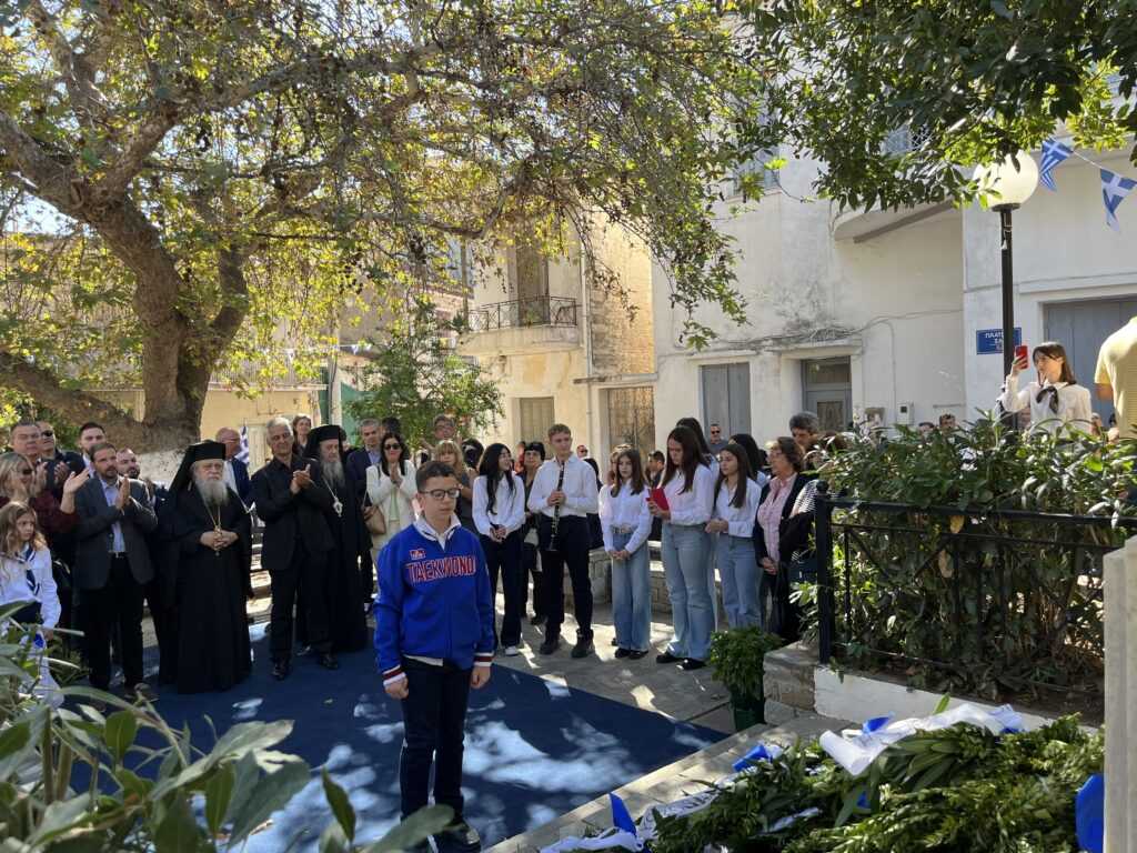 Κανείς δεν άκουσε το ποίημα της μαθήτριας μπροστά από το μνημείο, που κατέθεσε το στεφάνι εκ μέρους του Γυμνασίου Αλιβερίου.
