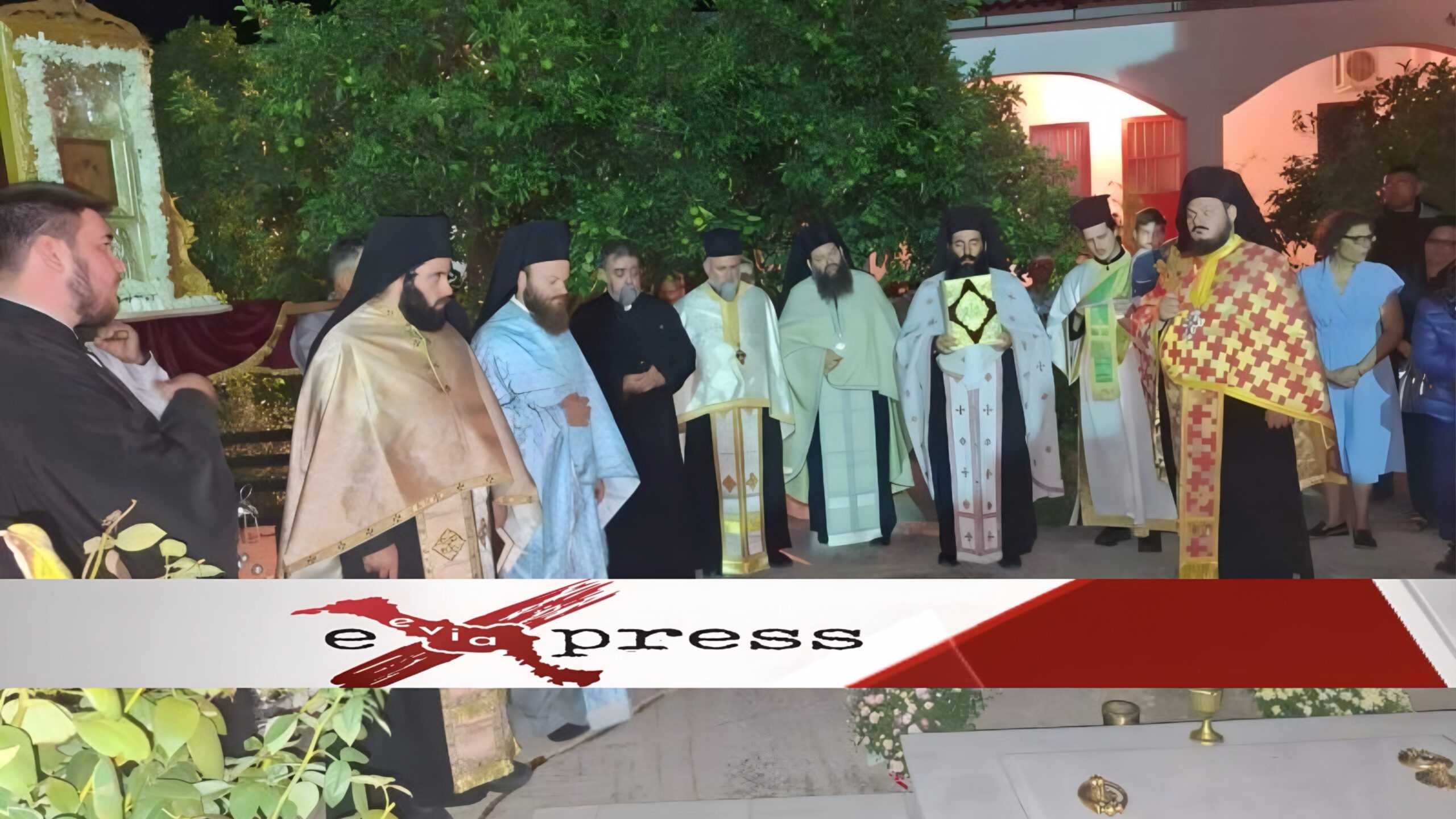 Το εσπέρας της Τρίτης τελέσθηκε ο πανηγυρικός Εσπερινός, με τη συμμετοχή Κληρικών της Ι. Μητροπόλεως Κορίνθου και εκ των Αρχιερατικών Περιφερειών Χαλκίδος, Μεσσαπίων και Διρφύων, ενώ προσκυνητές είχαν κατακλύσει το καθολικό και το προαύλιο του Ησυχαστηρίου.