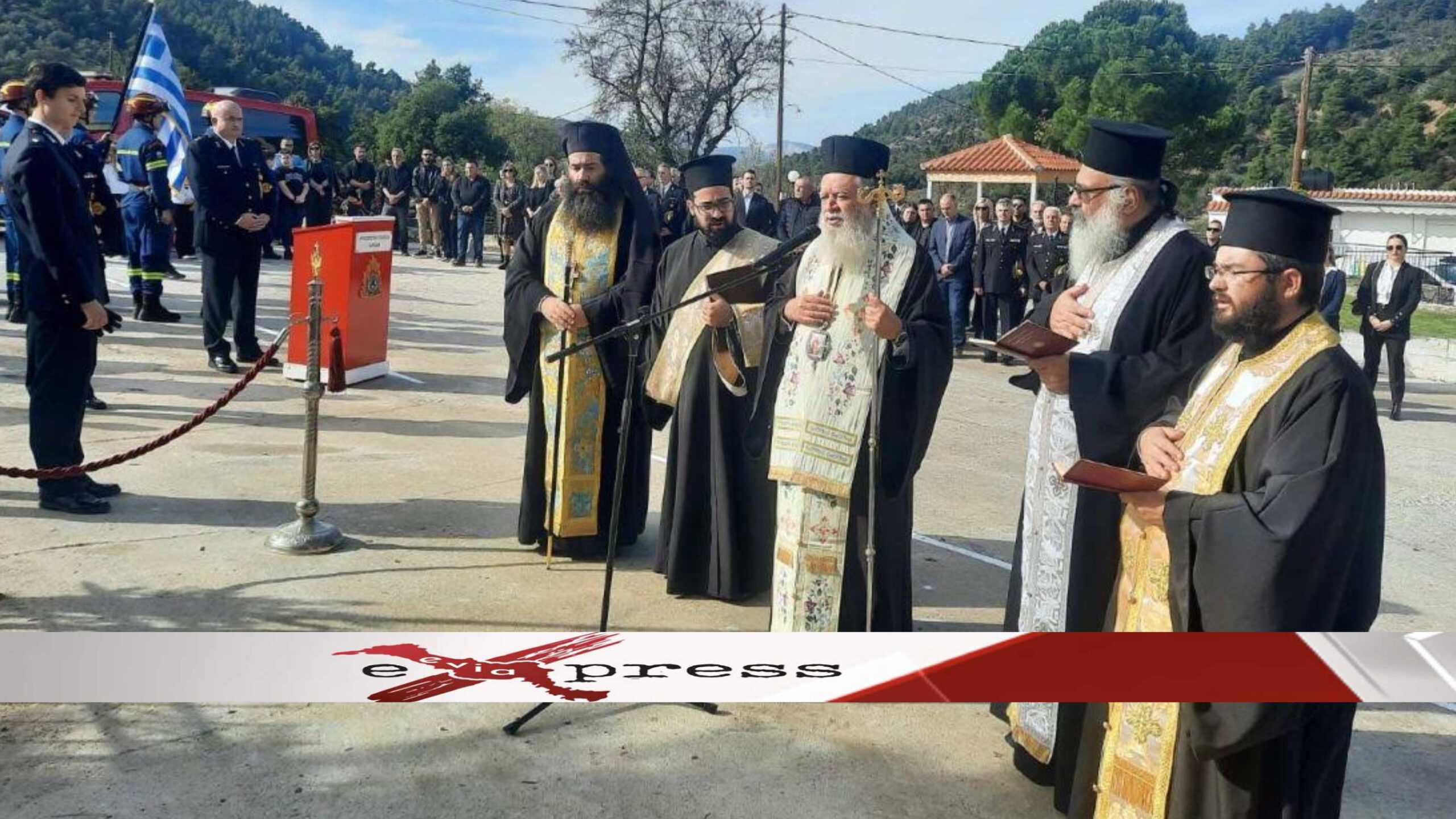 Ο Σεβασμιώτατος Ποιμενάρχης μας, Μητροπολίτης Χαλκίδος κ. Χρυσόστομος τέλεσε επιμνημόσυνη δέηση, υπέρ αναπαύσεως των ηρώων πυροσβεστών, παρουσία εκπροσώπων του Κοινοβουλίου, της Α/βάθμιας και Β/βάθμιας τοπικής αυτοδιοίκησης, της Πυροσβεστικής και των άλλων σωμάτων ασφαλείας, συγγενών των ηρώων, της μαθητιώσης νεολαίας της περιοχής και των μελών των εθελοντικών ομάδων δασοπροστασίας, διάσωσης και δασοπυρόσβεσης της περιοχής.