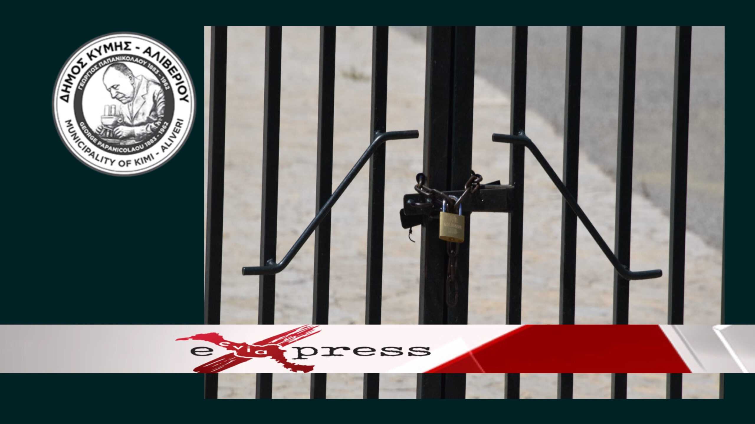 Ο Δήμος Κύμης – Αλιβερίου ενημερώνει τους δημότες ότι, λόγω των έντονων καιρικών φαινομένων που αναμένεται να πλήξουν την περιοχή αύριο, Τετάρτη 21 Ιανουαρίου 2026, θα παραμείνουν κλειστά όλα τα σχολεία, όλων των βαθμίδων που λειτουργούν στον Δήμο μας.
