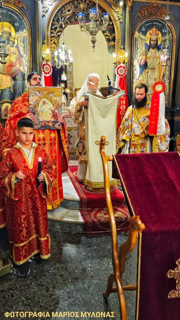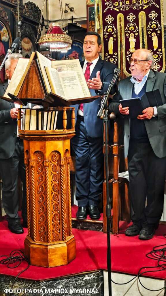 Επίσης στο αναλόγιο έψαλε ο Πρωτοψάλτης του ιερού ναού κ. Ευάγγελος Στάμου με την συμμετοχή και άλλων ιεροψαλτών.