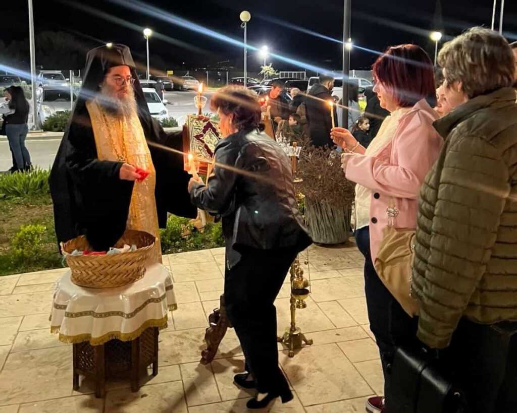 Ο π. Αιμιλιανός ευχήθηκε σε όλους, το Φως και η Χαρά της Αναστάσεως να πλημμυρίζουν τις καρδιές τους και μοίρασε σε όλους το πασχαλινό αυγό.