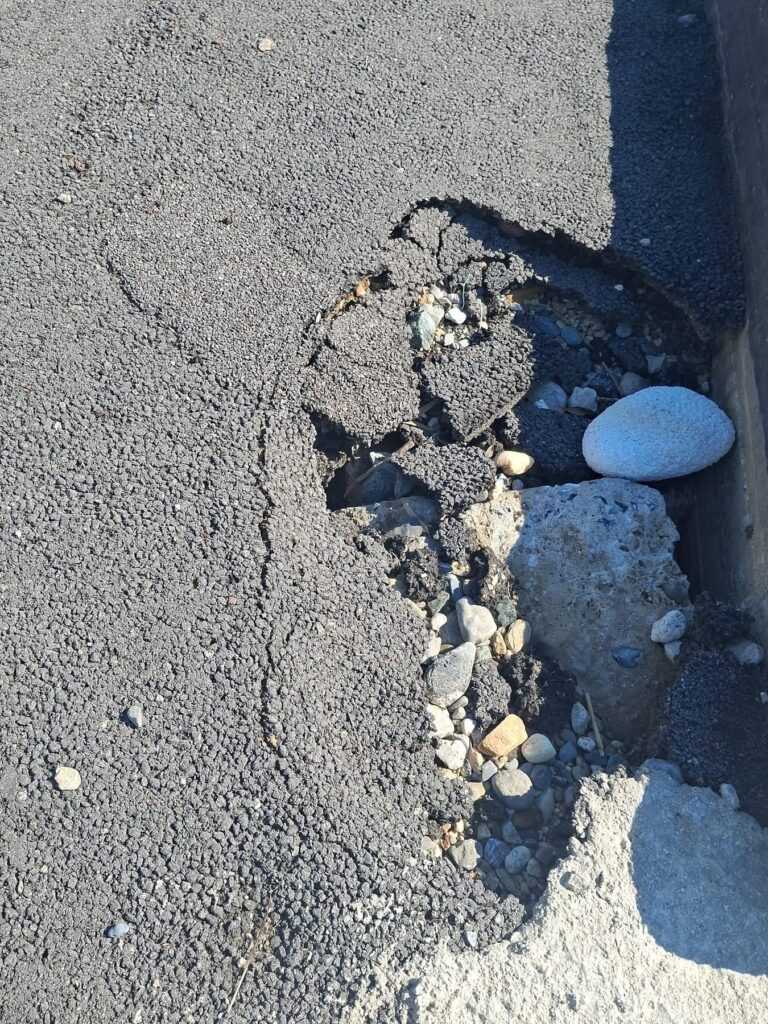 Ιδιαίτερη ανησυχία προκαλούν και τα σημεία όπου το έδαφος έχει υποχωρήσει, δημιουργώντας επικίνδυνες συνθήκες για κατοίκους και επισκέπτες. Χαρακτηριστική είναι η κατάσταση στο σημείο του γεφυριού, όπου – όπως έχει ήδη παραδεχθεί δημόσια η δημοτική αρχή – υπήρξε αστοχία στην αποκατάσταση.