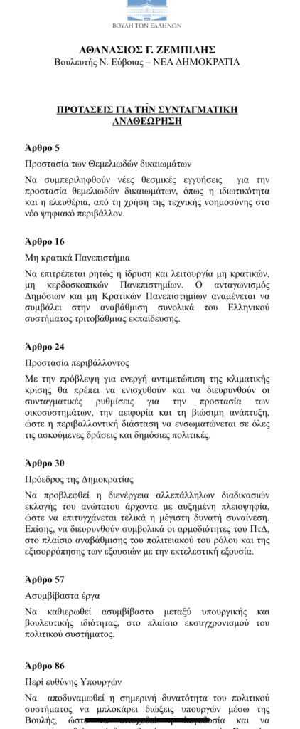 βουλευτές της ΝΔ να υποβάλουν προτάσεις για την συνταγματική αναθεώρηση, ο